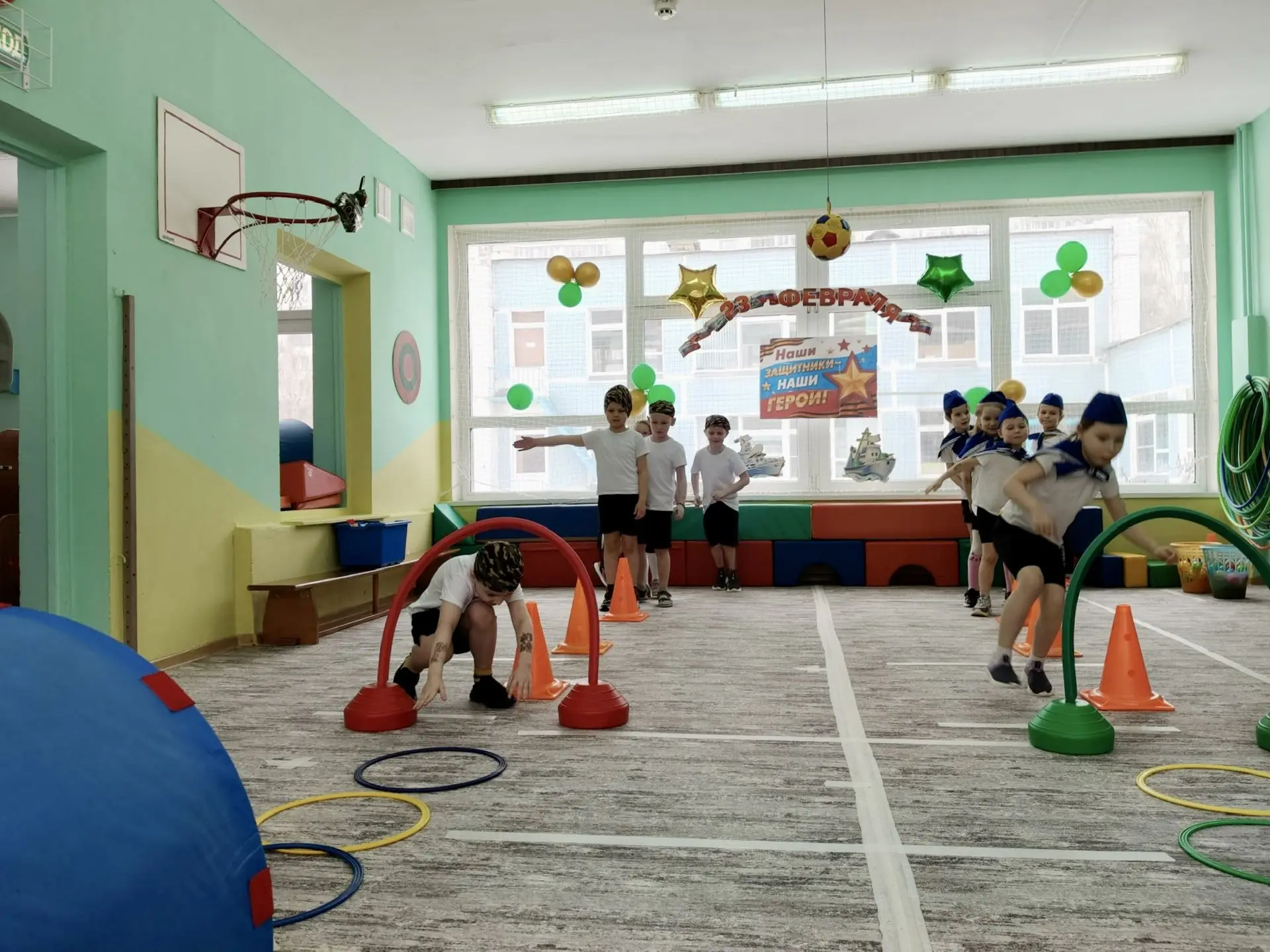 🔎После торжественного построения один из родителей провёл для команд «моряков» и «десантников» бодрую разминку. А дальше началась настоящая тактическая подготовка: ребятам предстояло преодолеть полосу препятствий, проявив ловкость, скорость и командный дух.