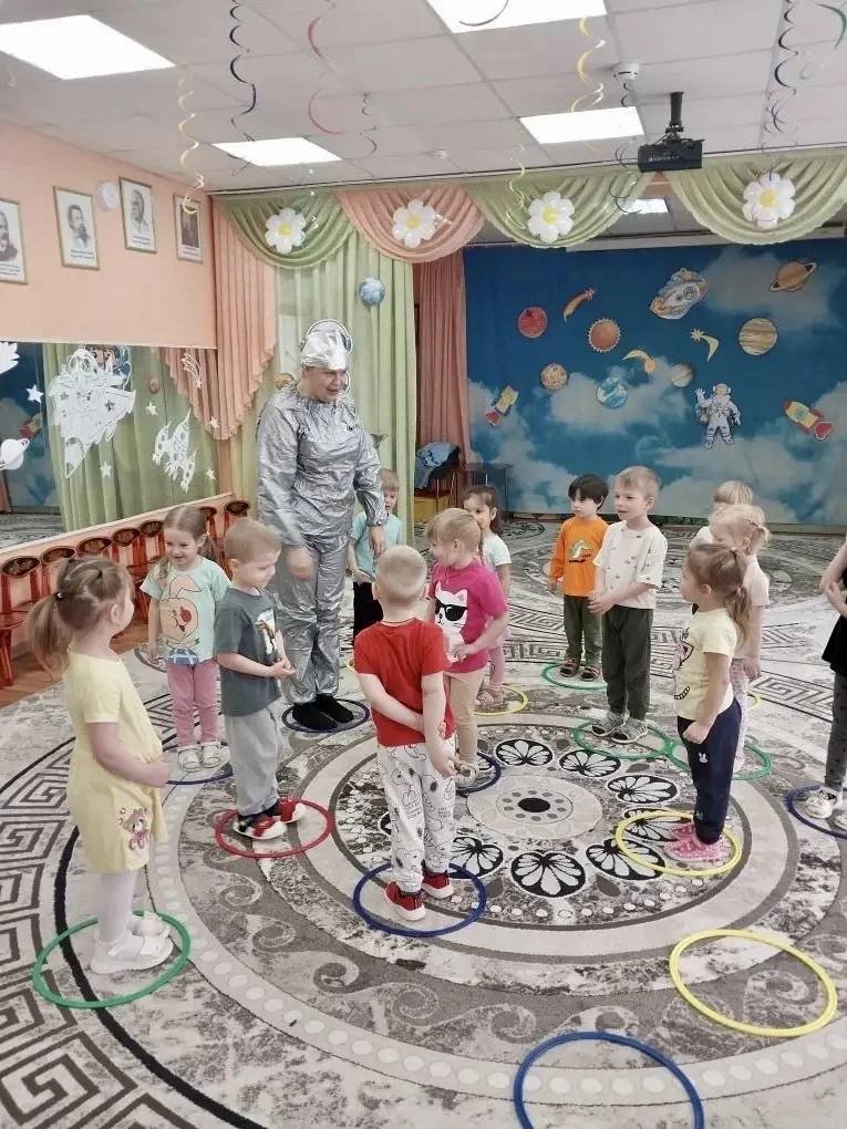 ✨ Средние группы подготовили музыкальные номера - песни о ракетах, стихи о Гагарине и загадки о далёких мирах. Ребята проявили ловкость в «космическом кроссе» и показали, как высоко можно «прыгать на Луну».