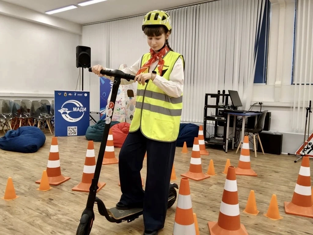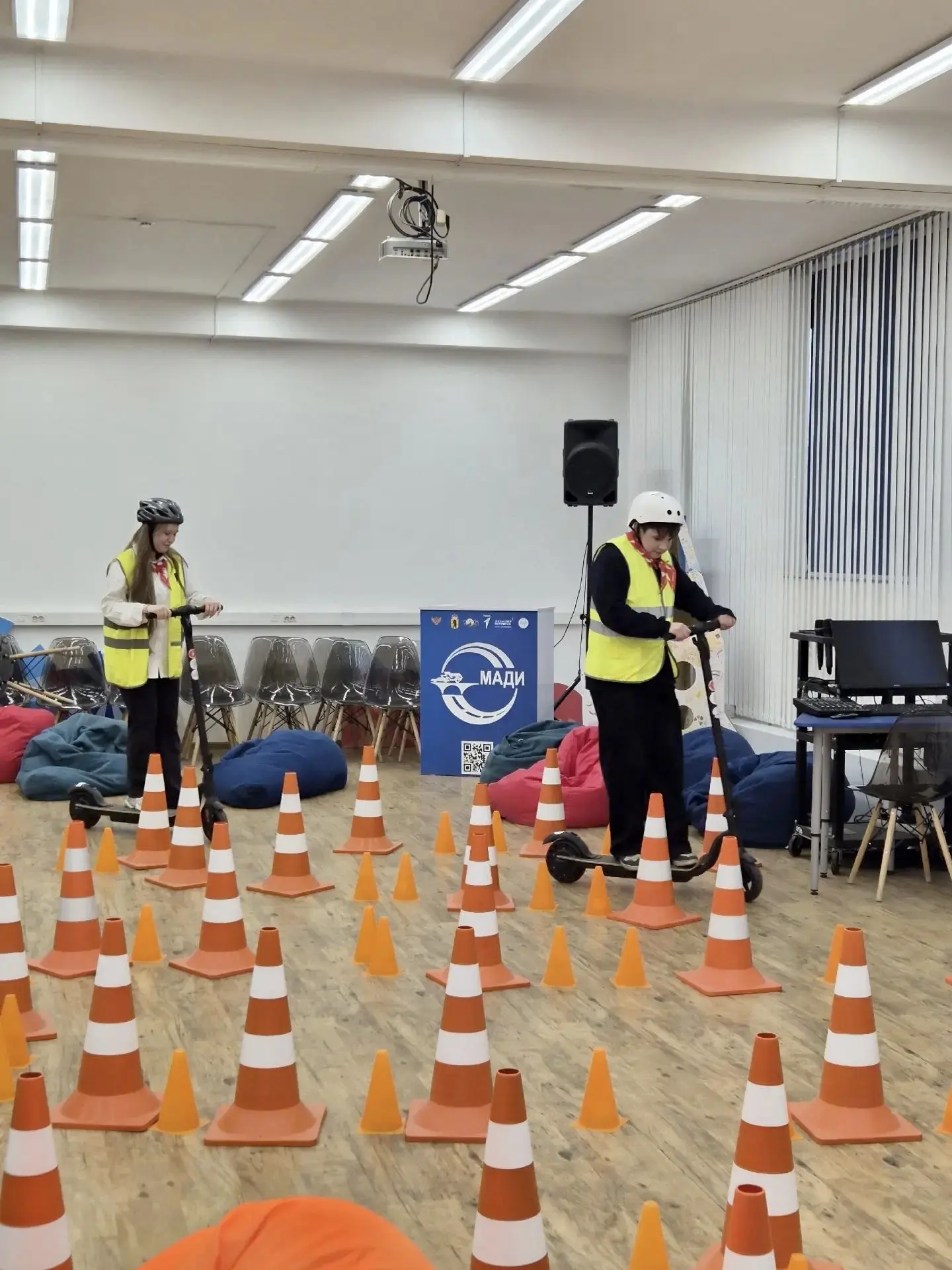 🎯 Каждый участник попробовал управлять самокатом и выполнить различные задания: фигурный объезд препятствий, маневрирование и экстренное торможение. Под руководством инструкторов школьники отработали навыки управления и убедились, насколько важны внимание и техника.