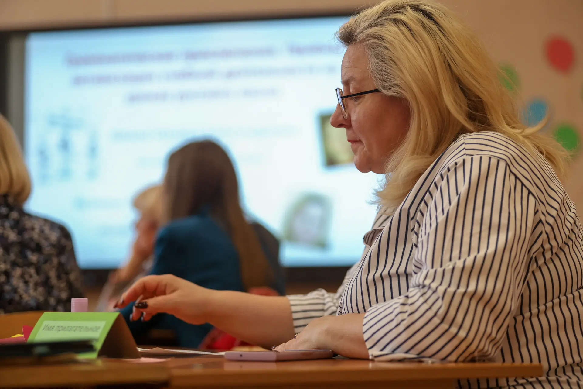 В первый день педагоги посетили лекцию «Смотреть в одном направлении». Спикером стала Юлия Борисовна Мукосеева, Почетный работник образования РФ, победитель конкурса «Учитель года Москвы» и член правления Межпредметной ассоциации столичных учителей.