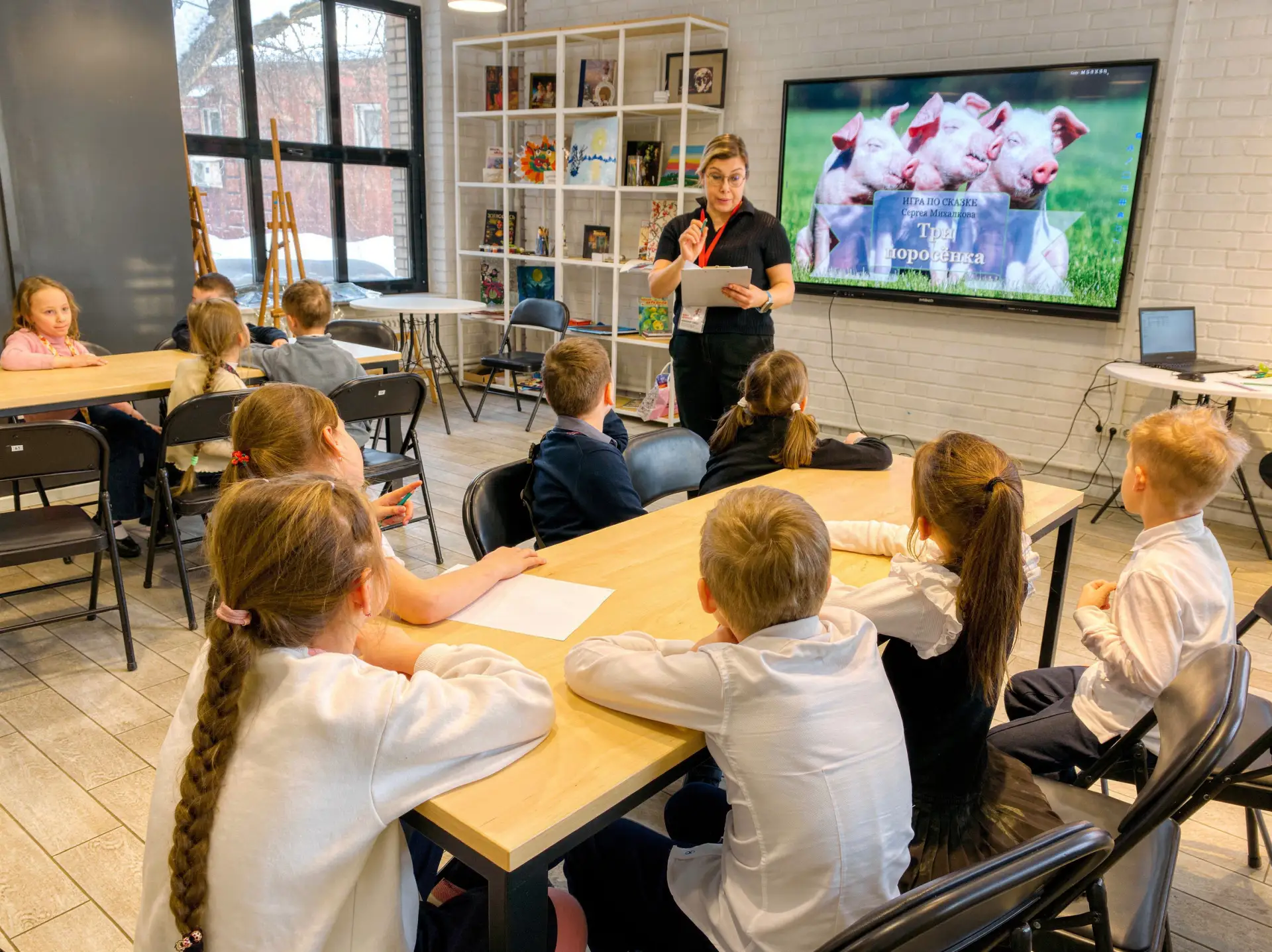 Ученики 1«Б» и 1«В» классов (Эмма, Георгий, Мария, Анна, Алина, Артемий, Александр) блестяще справились со всеми заданиями, посвящёнными творчеству замечательного детского писателя Сергея Михалкова. Игра проходила в атмосферной Библиотеке №122 им. А.С. Грина, где царит дух приключений и любви к книгам!