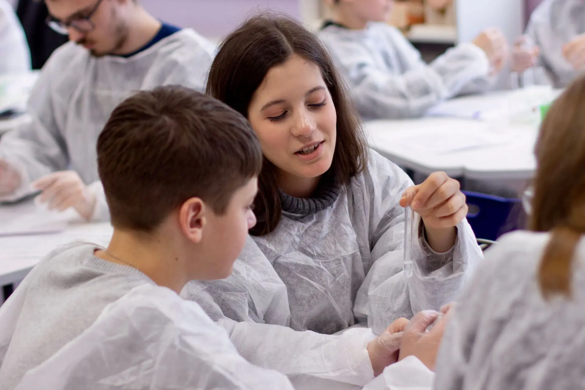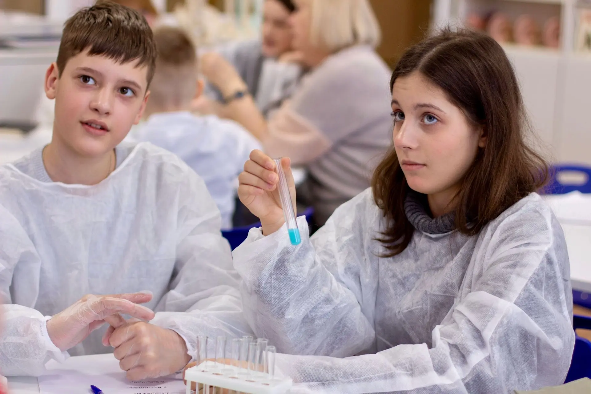 В рамках темы "Качественные реакции" ребята учились «допрашивать» невидимые частицы — катионы и анионы, чтобы понять, из чего состоит то или иное вещество. Самой зрелищной частью стала практическая работа.
