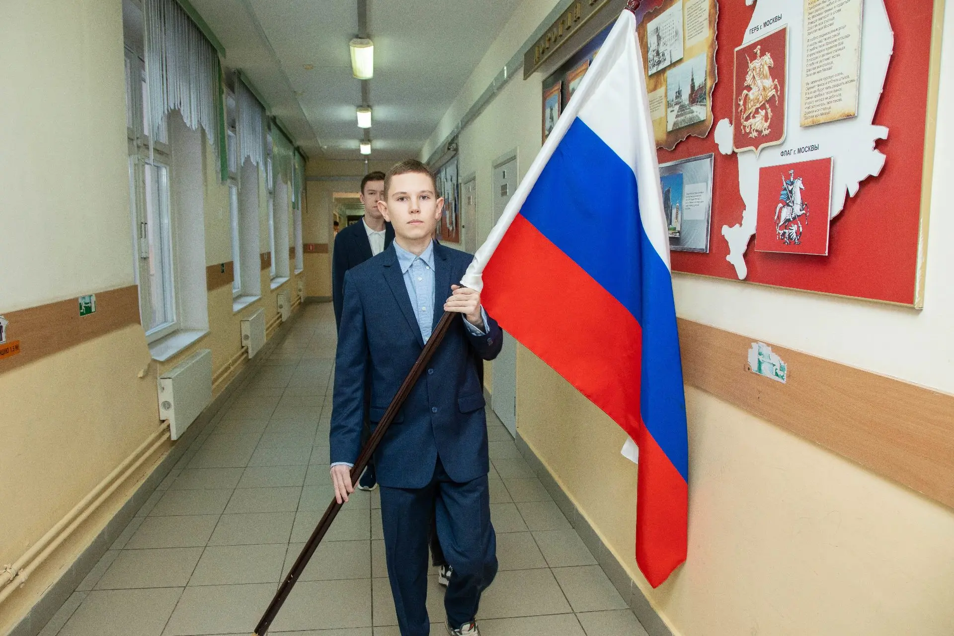 А у наших кадет и всей школы оно началось с важной церемонии - поднятия флага Российской Федерации!