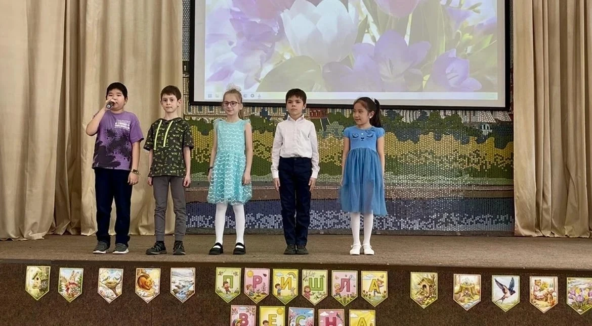 В начальной школе прошёл яркий и душевный праздник "Здравствуй, весна!" Ведущими стали талантливые третьеклассники — участники конкурсов чтецов. Они с радостью делились весенним настроением, читали стихи, загадывали загадки и рассказывали приметы о весне.