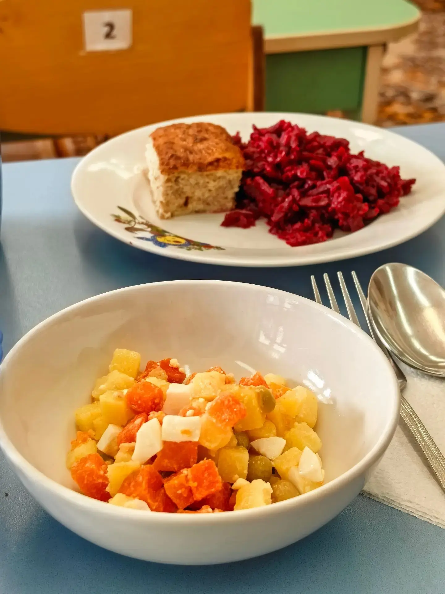 🥗Салат "Мозаика" — яркий старт обеда. Ребята с удовольствием едят разноцветные кубики из овощей.