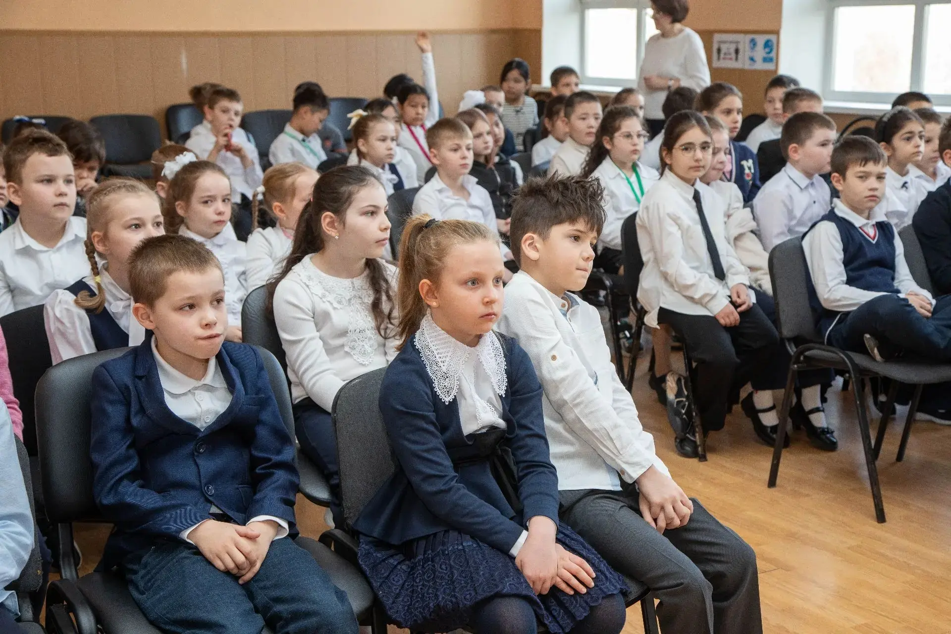 😎Девчонки из 3 "О" удивили зал зажигательным танцем, а в завершение второклассники устроили настоящий танцевальный флешмоб! Танцевал и пел весь зал — это было невероятно весело и дружно!