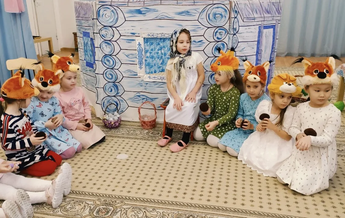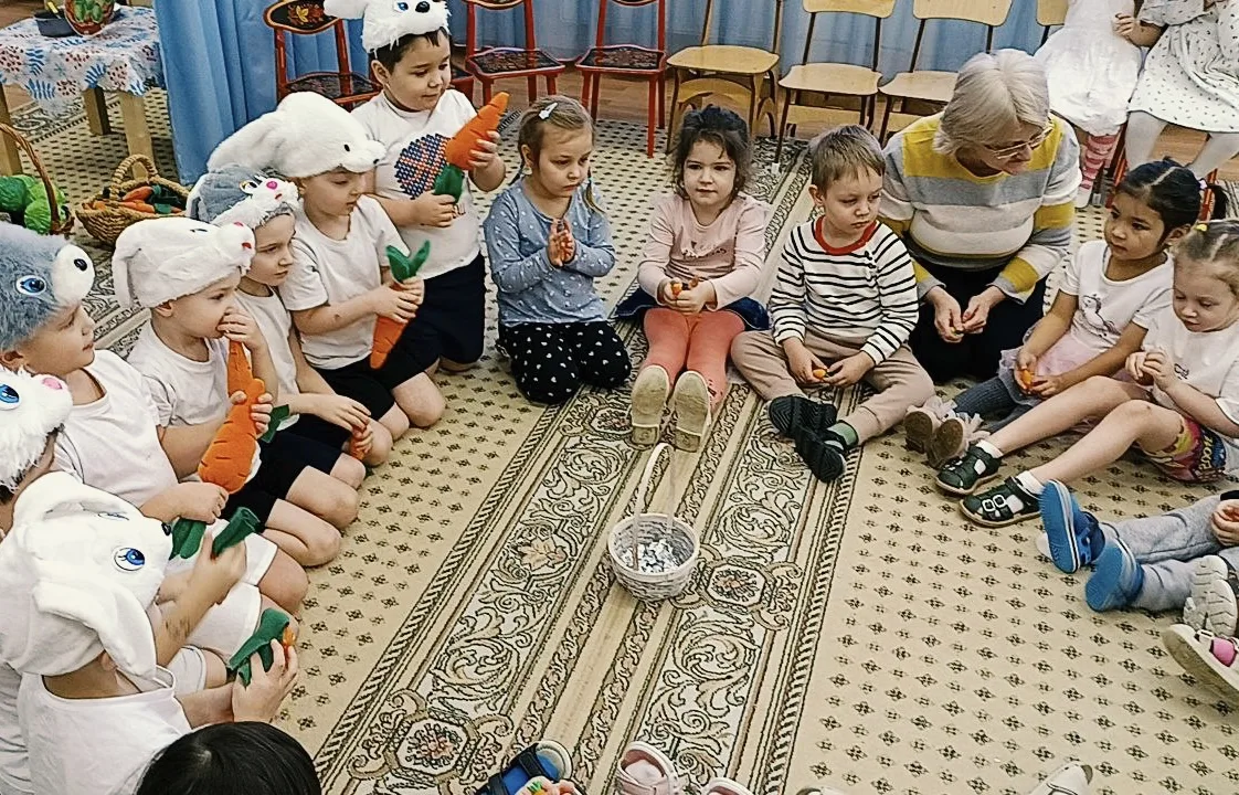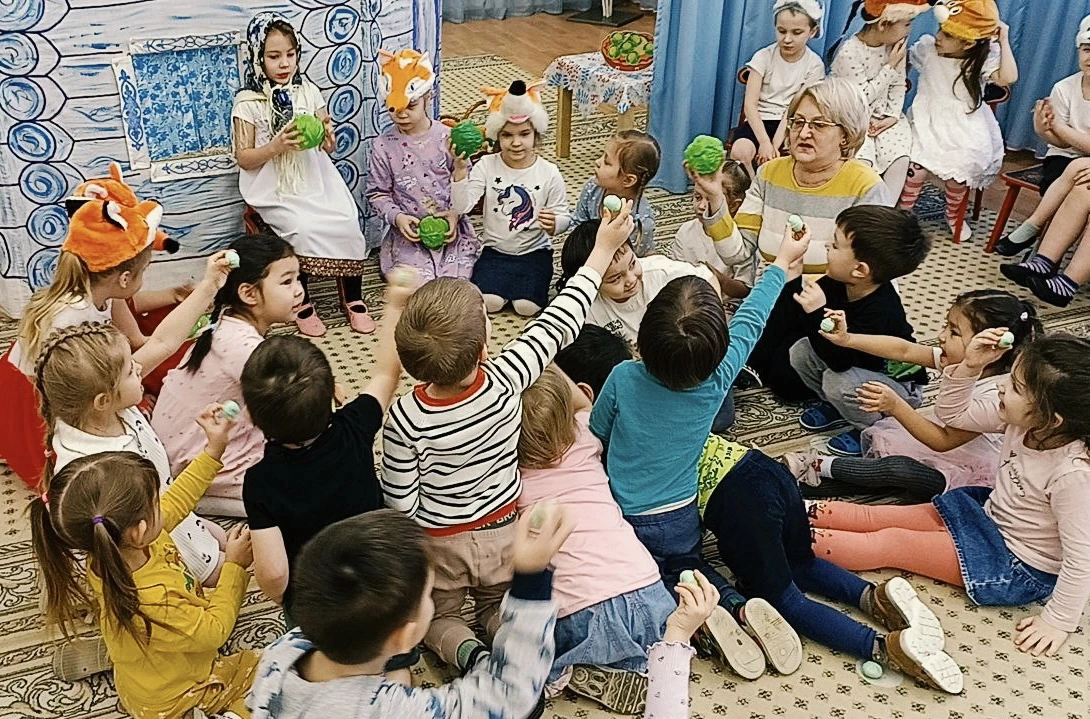 В гостях у средней группы «Семицветики» побывали настоящие артисты — старшая группа «Звездочки». Ребята показали интерактивный спектакль «Бабушка-Забавушка» с пальчиковыми играми. Малыши не только смотрели, но и сами включались в представление!