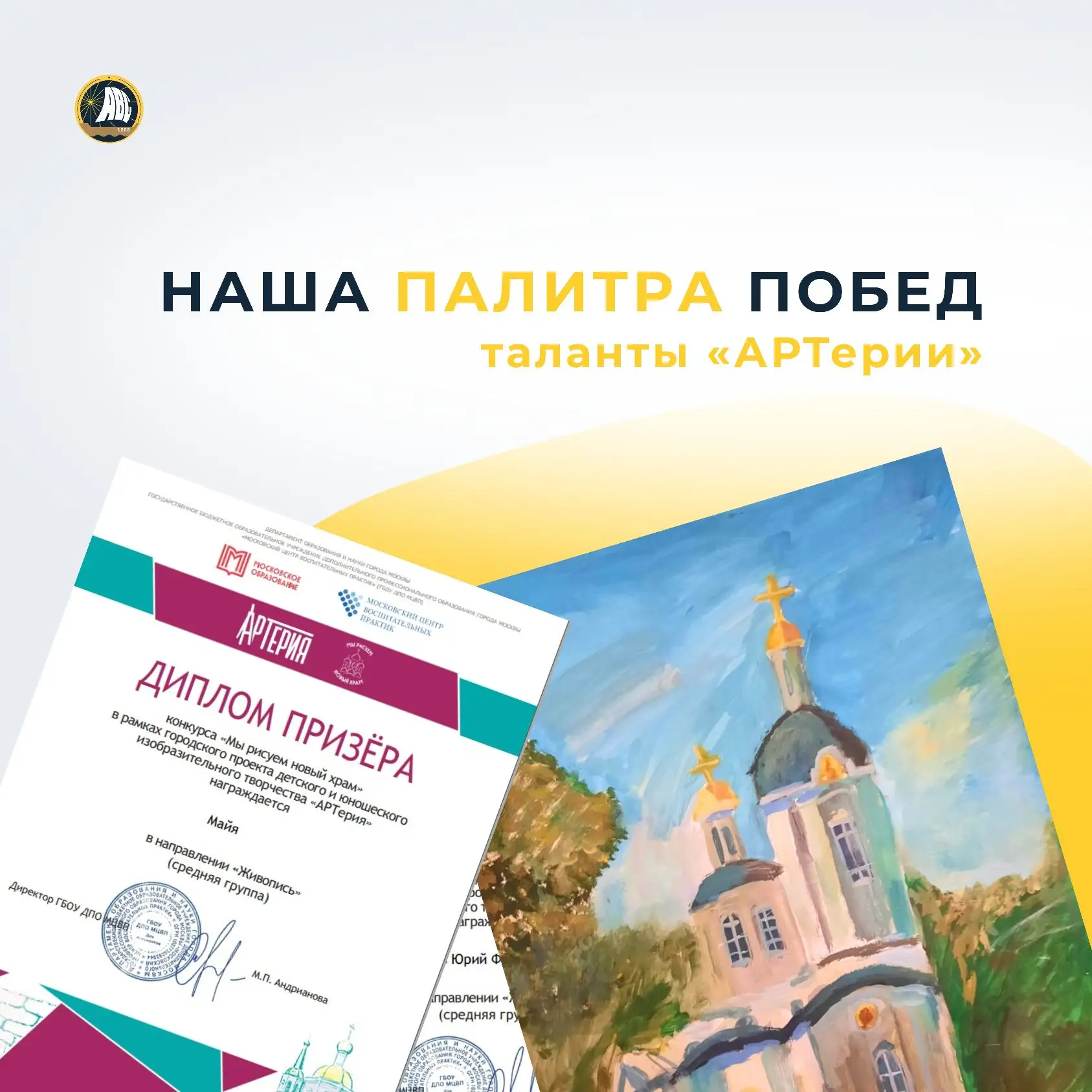 Наши ученики приняли участие в интересном и важном конкурсе «Мы рисуем новый храм» в рамках масштабного городского проекта «АРТерия» Московского центра воспитательных практик.