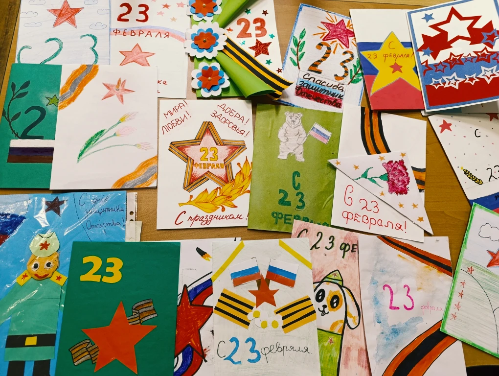 А вся начальная школа дружно поздравила защитников в акции «Спасибо, защитник Отечества!». Маленькие открытки, а сколько в них тепла!