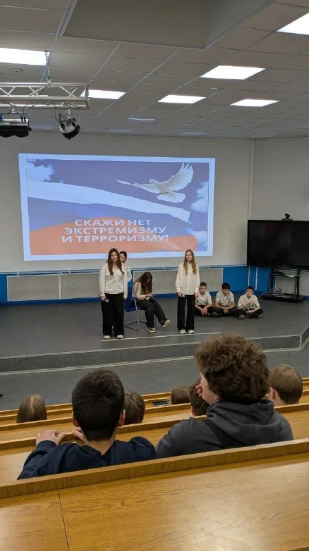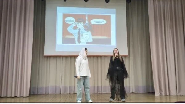 Ученики седьмого класса выступили перед аудиторией старшеклассников.
