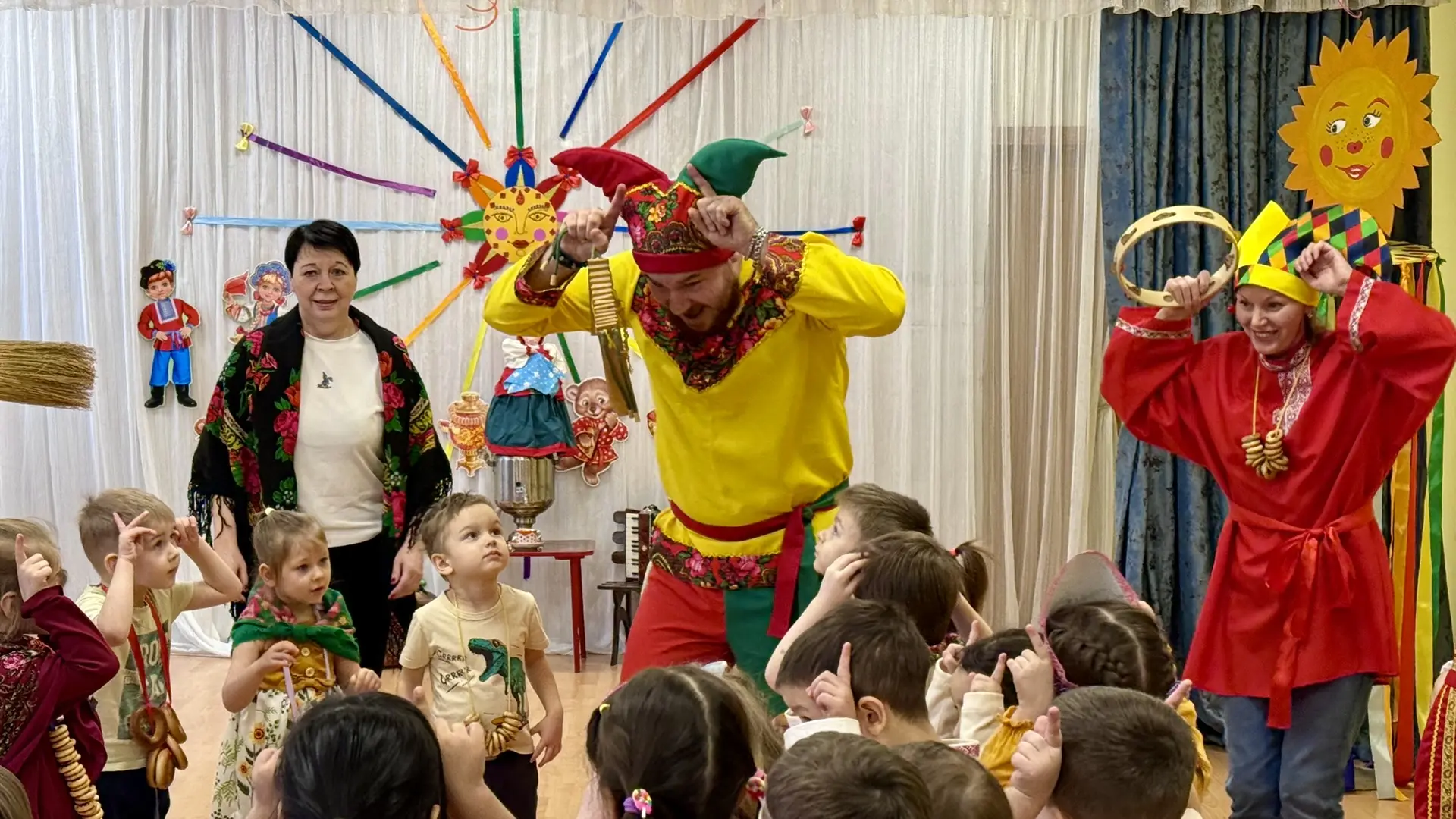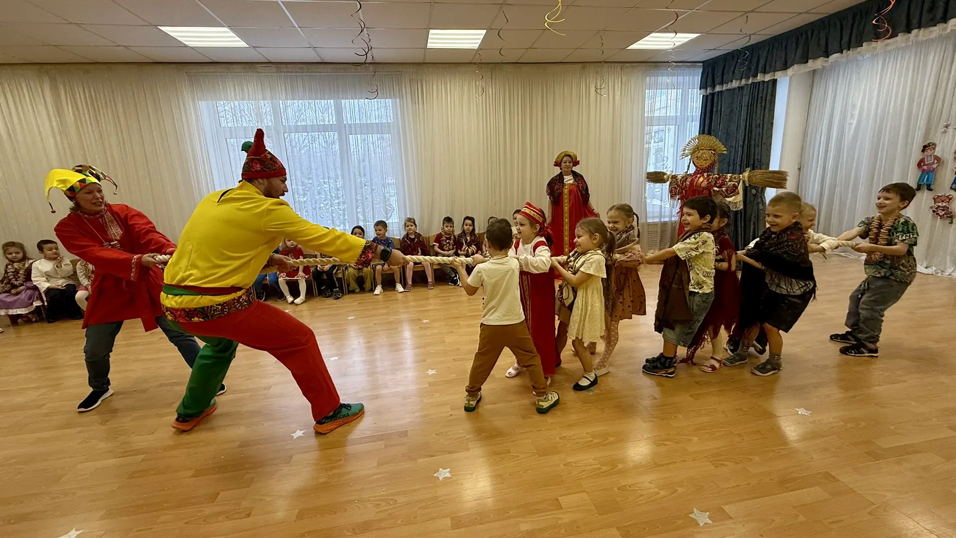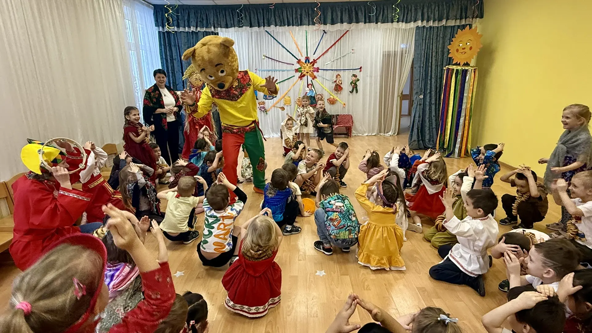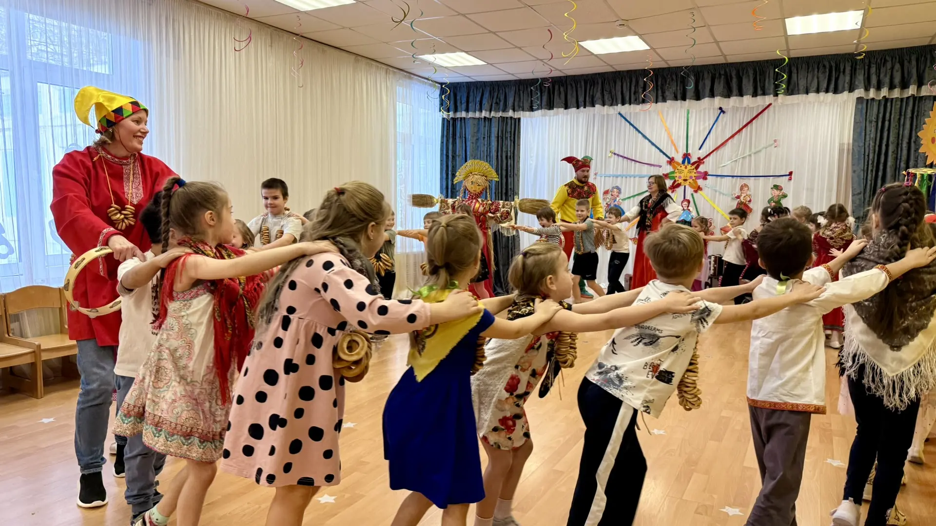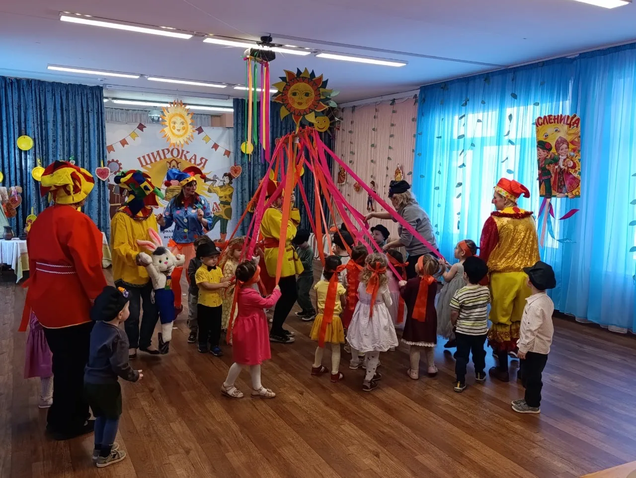Масленица в этом году прошла необычно — в актовом зале! Но это не помешало ребятам окунуться в мир русских традиций.