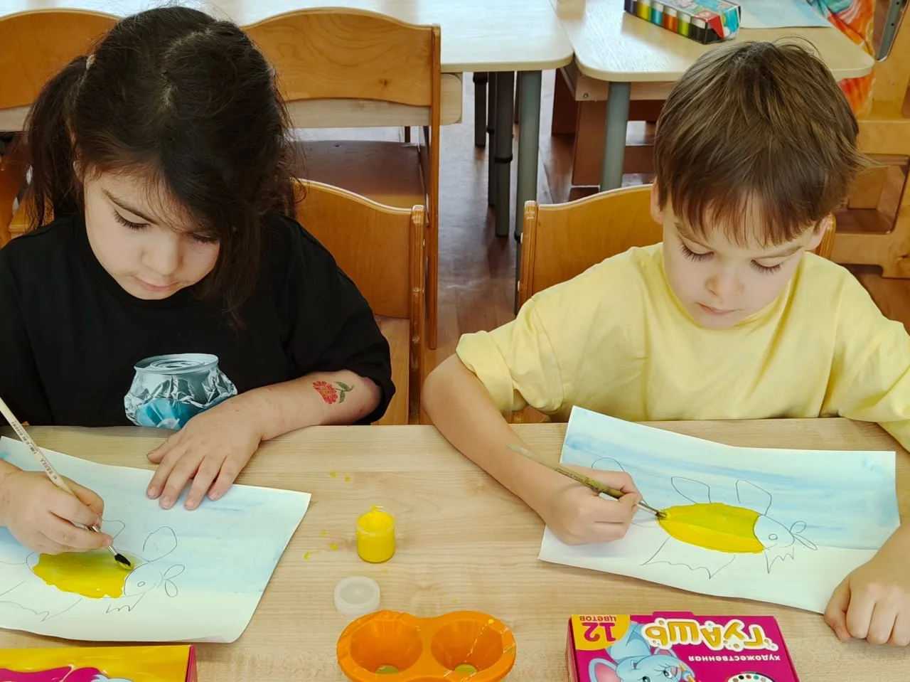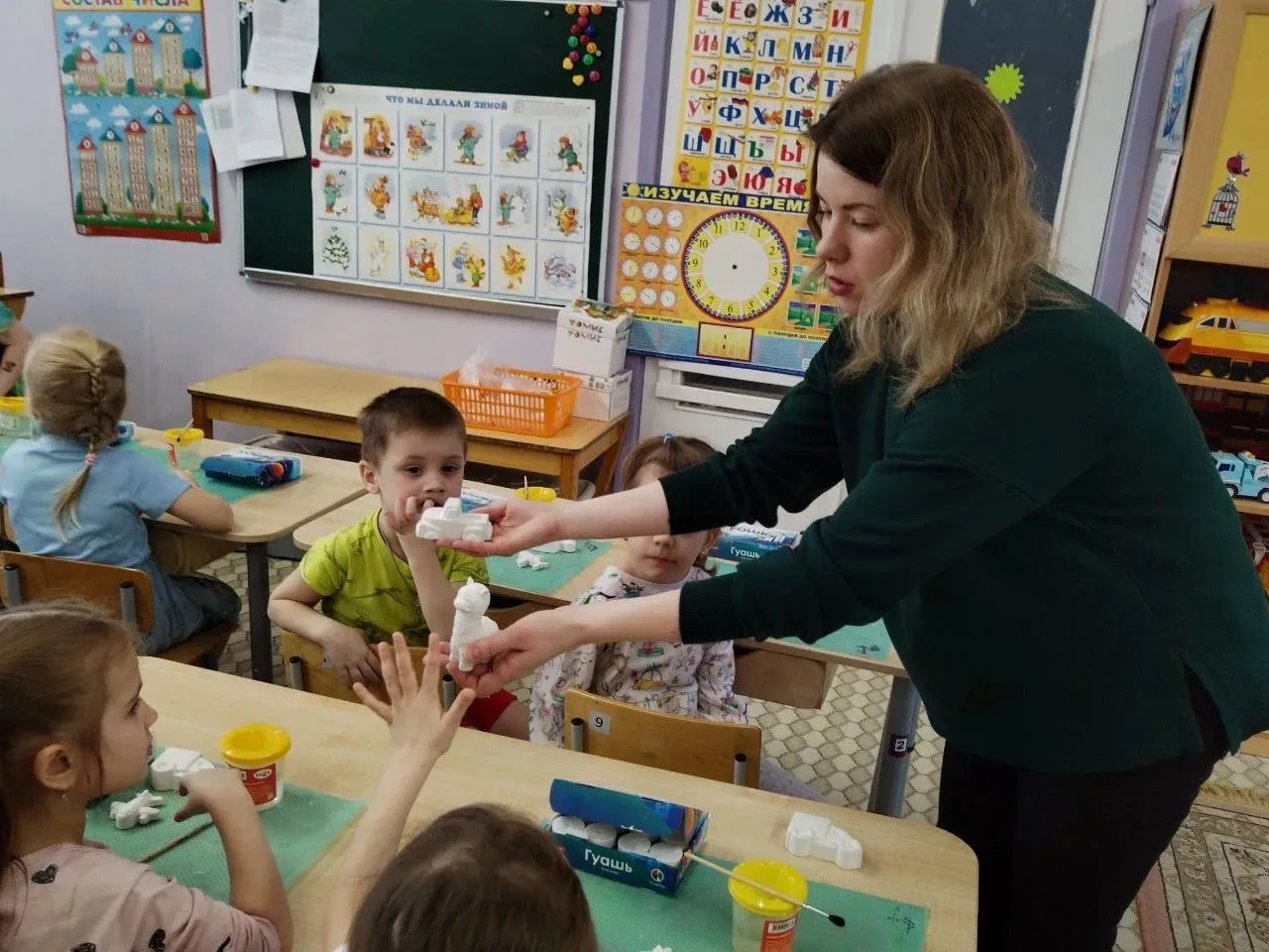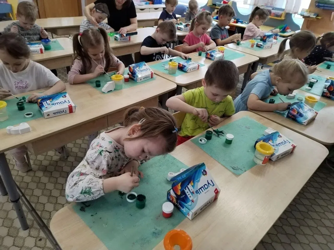 Вдохновившись сказочными образами, мальчишки и девчонки в художественной мастерской занялись творчеством, полностью погрузившись в создание своей золотой рыбки.