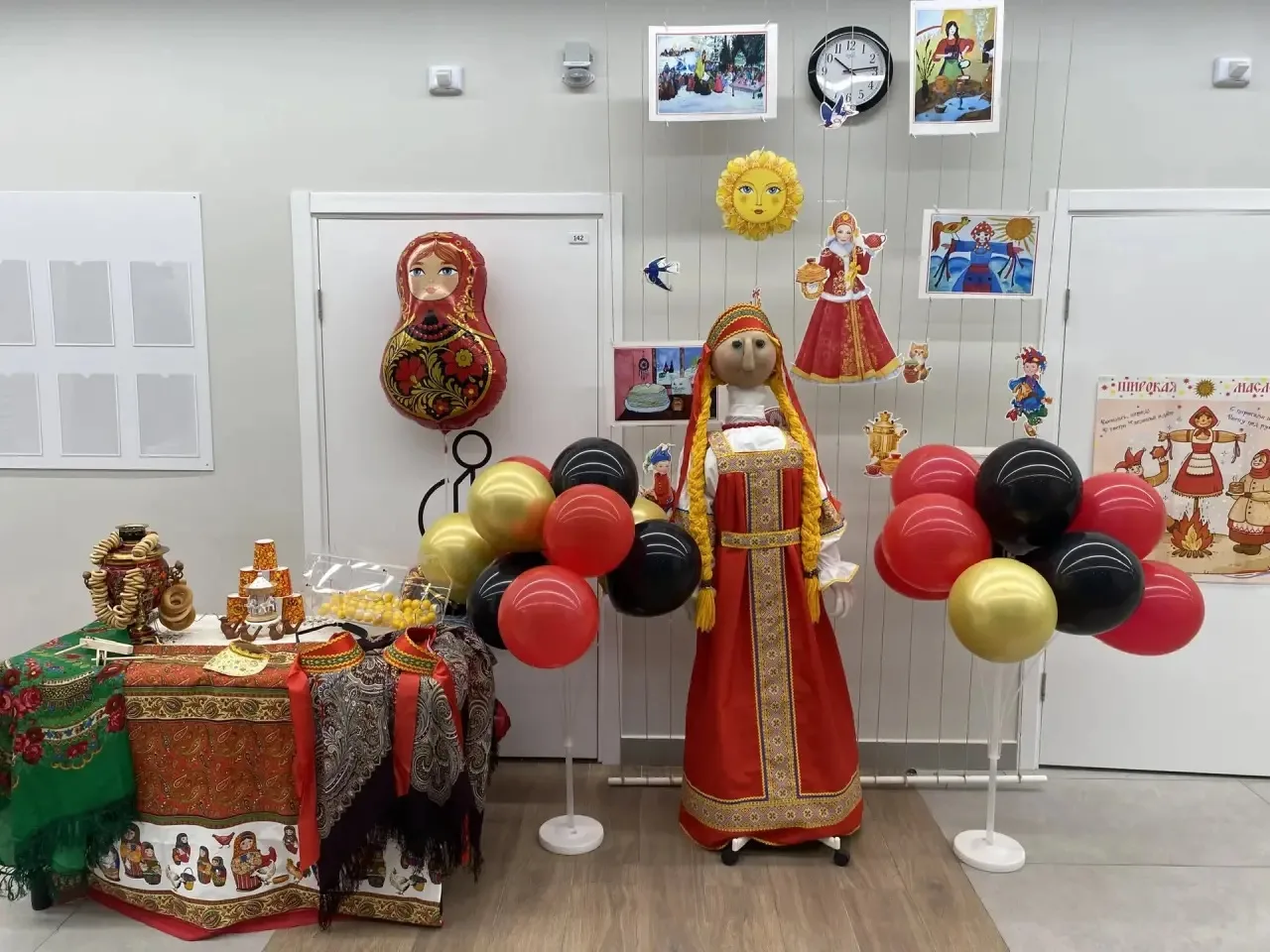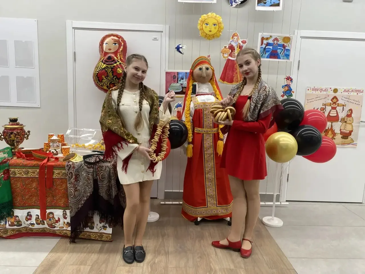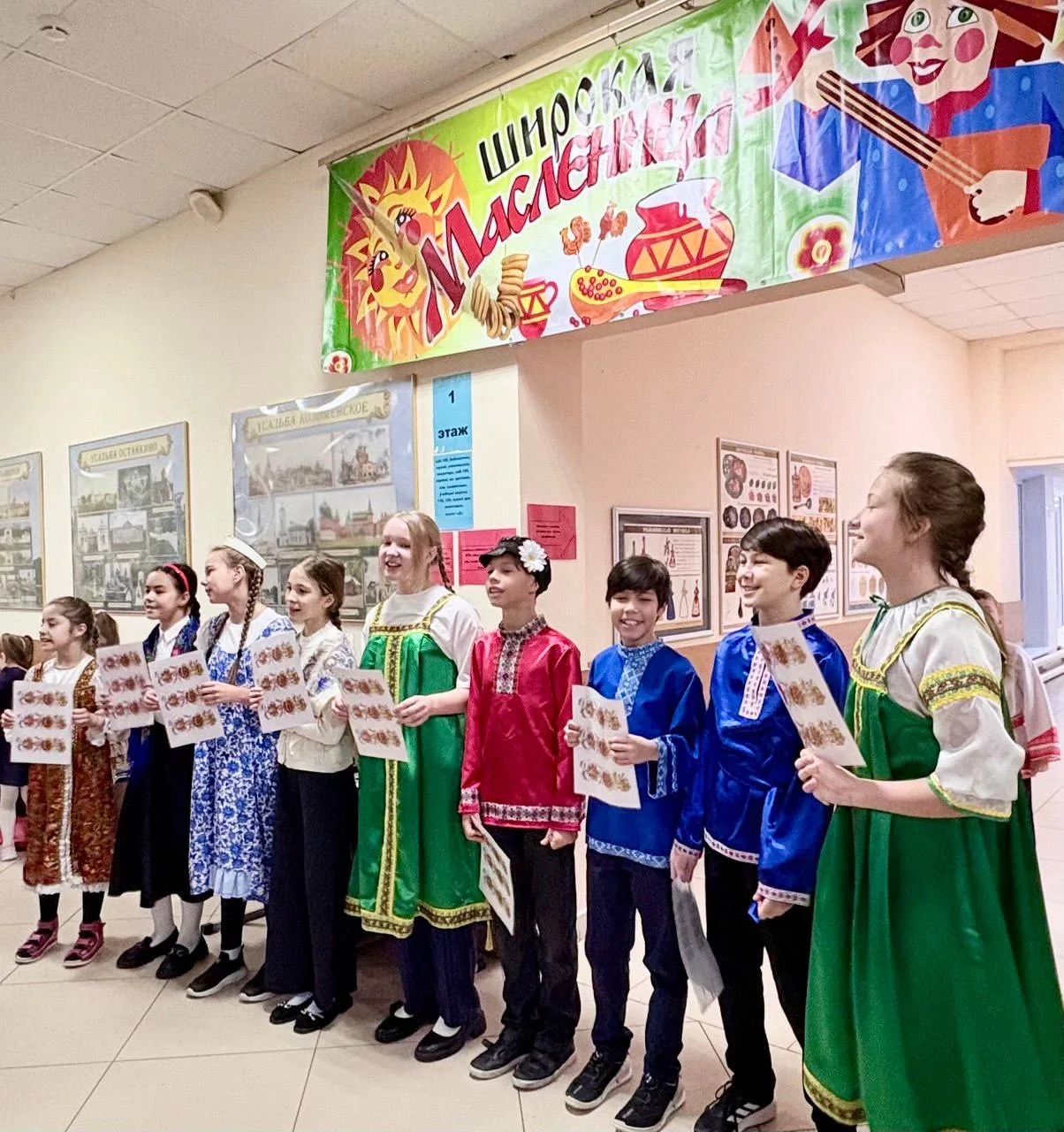 Вопреки законам физики ⚡️, скука испарилась моментально. Школьный коридор было не узнать: всех встречало буйство красок, яркие платки и улыбки. Украшение школы к Масленице 🌼🎨 задало тон всему празднику — тепло и солнечно, словно первый весенний день заглянул к нам в гости!