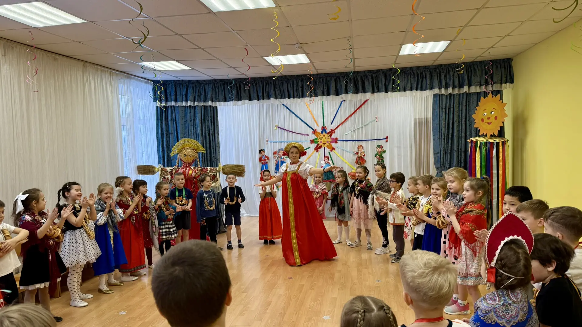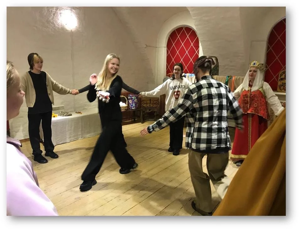 Пятиклассники не просто смотрели, но и сами активно участвовали: танцевали кадриль и другие народные танцы, знакомились с обычаями праздника. А ещё на празднике было настоящее (хоть и понарошку) сжигание чучела — очень символично и зрелищно!