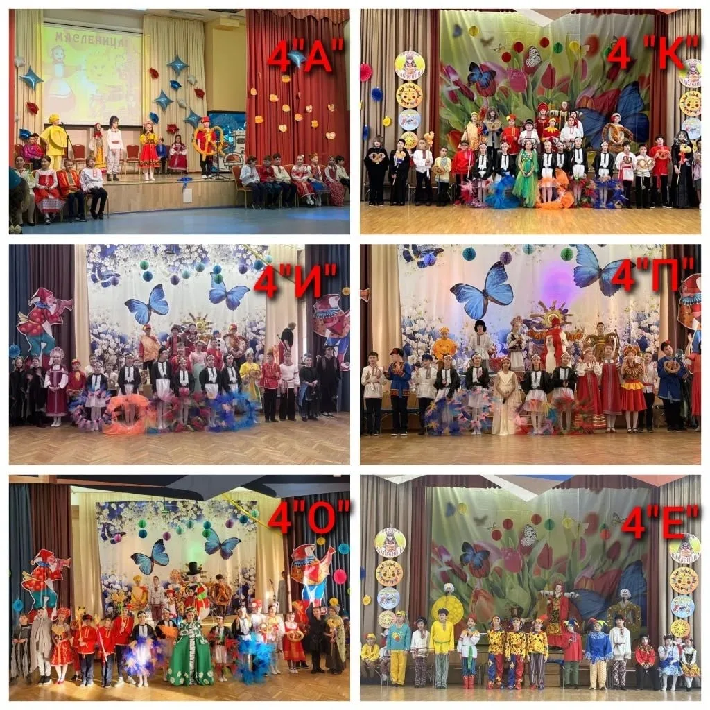 В начальной школе прошёл праздник Широкая Масленица. Ученики 4 "А", 4"Е", 4 "И", 4 "К", 4 "О", 4 "П" классов показали праздничный спектакль "Масленичный разгуляй".