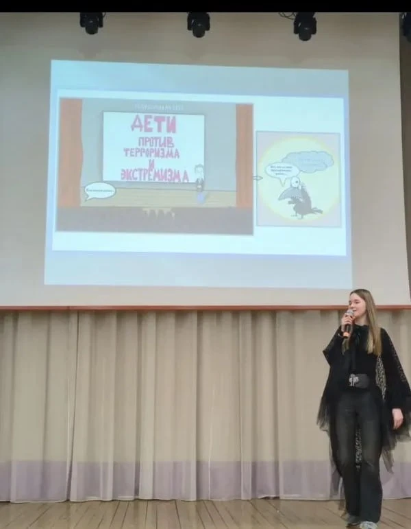 В рамках просветительского марафона «Дети и молодежь против экстремизма и терроризма» под руководством социальных педагогов Мироновой Т.В и Жуковой С.С и учителя изобразительного искусства Рожковой О.В. ученики седьмых классов представили увлекательное театрализованное представление вместе с просмотром тематического комикс-проекта «Непослушная ворона».