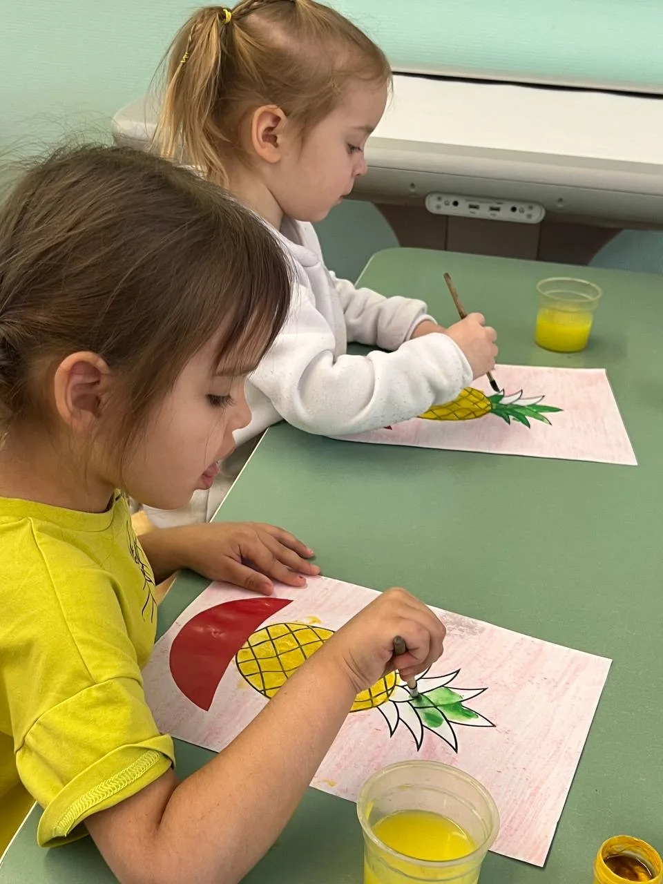 Мальчишки и девчонки в увлекательной беседе также узнали о пользе солнечного фрукта, а затем ребята с головой окунулись в творчество. Серые зимние пейзажи в одно мгновение уступили место сочным желтым и зеленым тонам. Ребята с удовольствием рисовали ананасы. Получилось ярко, свежо и безумно позитивно! День лишний раз напомнил: даже в самый холодный зимний день можно найти повод для яркой улыбки.