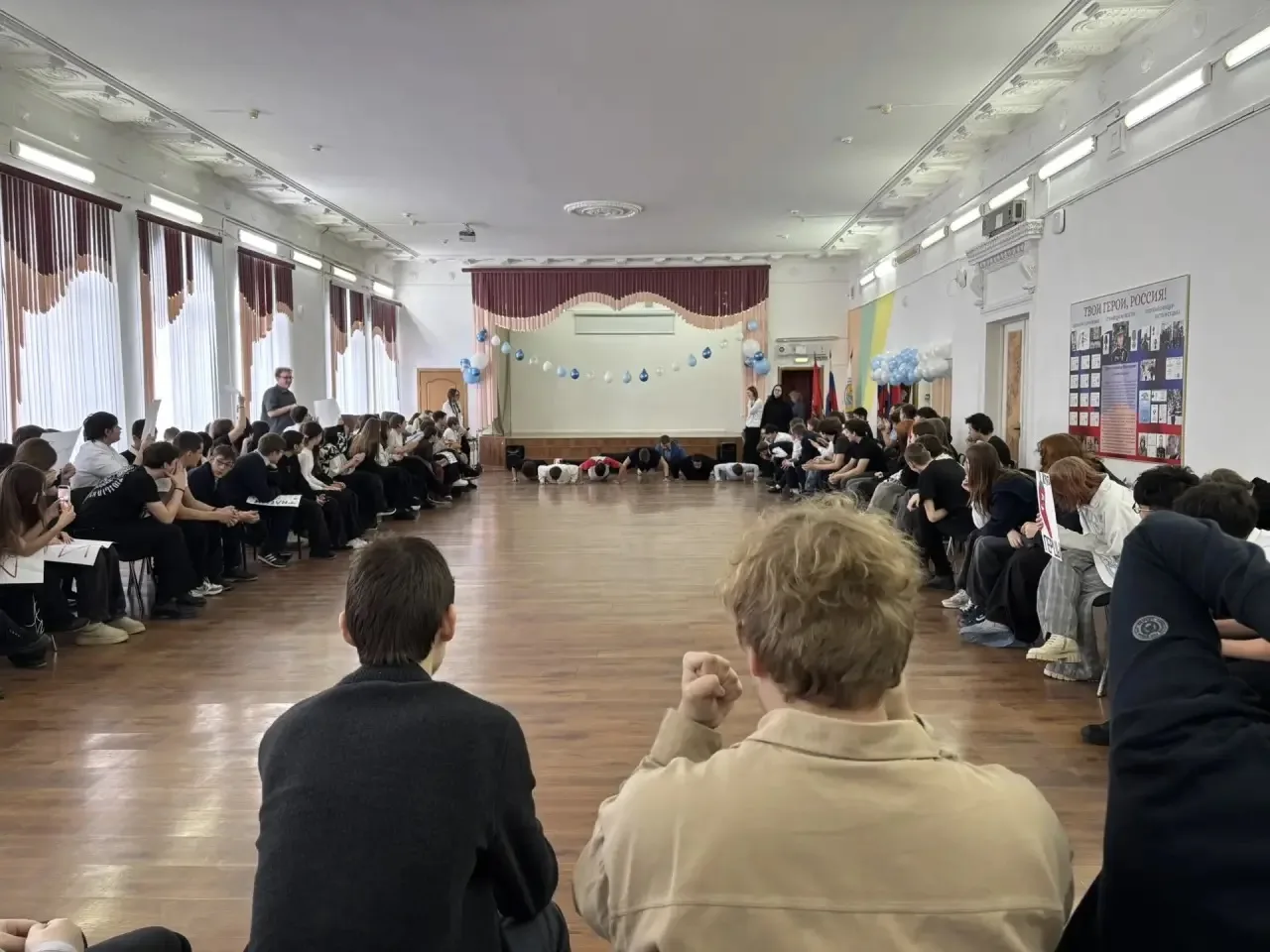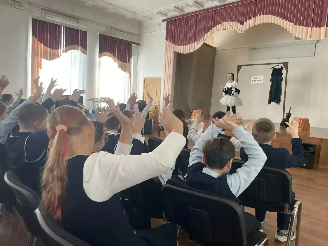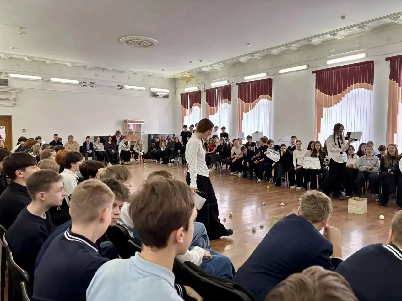 ⚡️Первая часть мастер-класса включала в себя интерактив в актовом зале, где ученики 2 «Г» и 3 «Д» классов рассказывали Эмилии, какими видами спорта занимаются они.