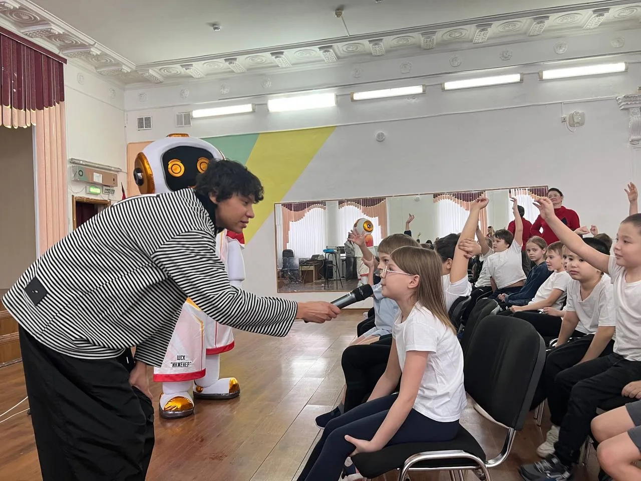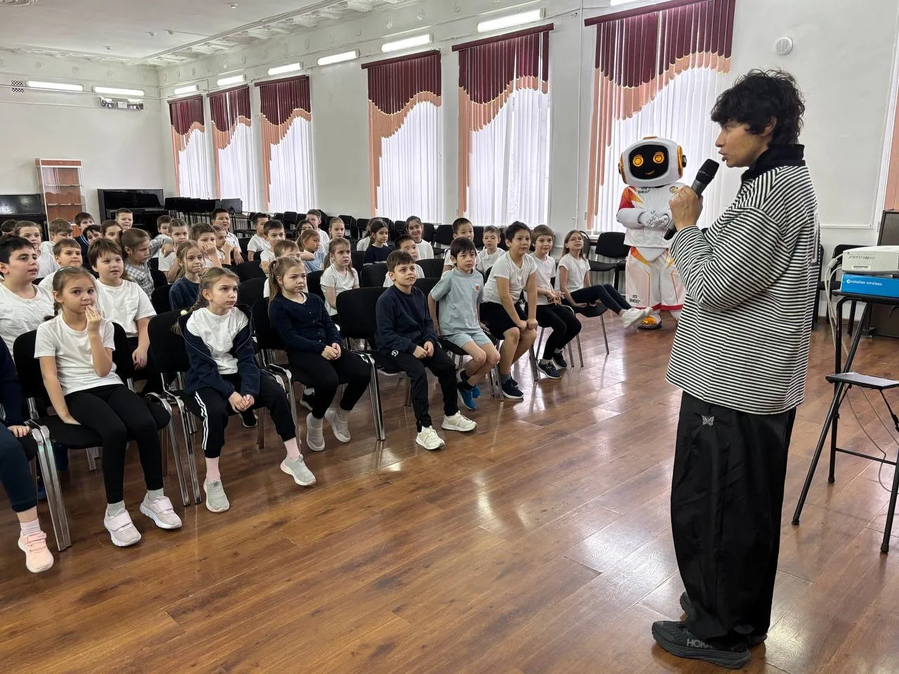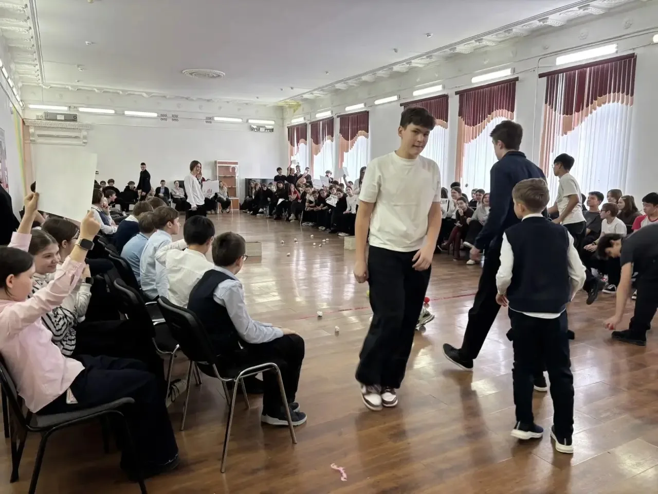 ⚡️Первая часть мастер-класса включала в себя интерактив в актовом зале, где ученики 2 «Г» и 3 «Д» классов рассказывали Эмилии, какими видами спорта занимаются они.