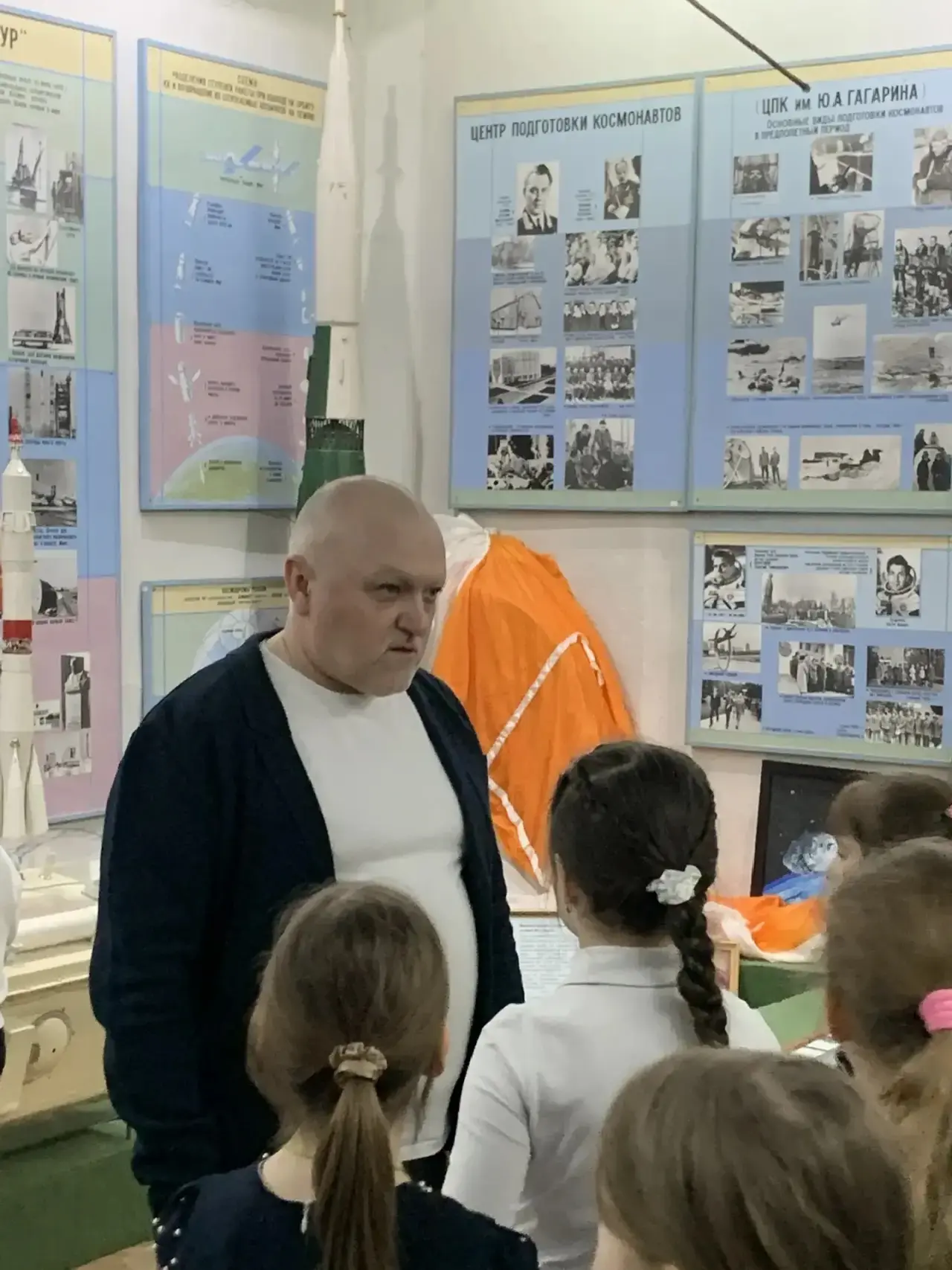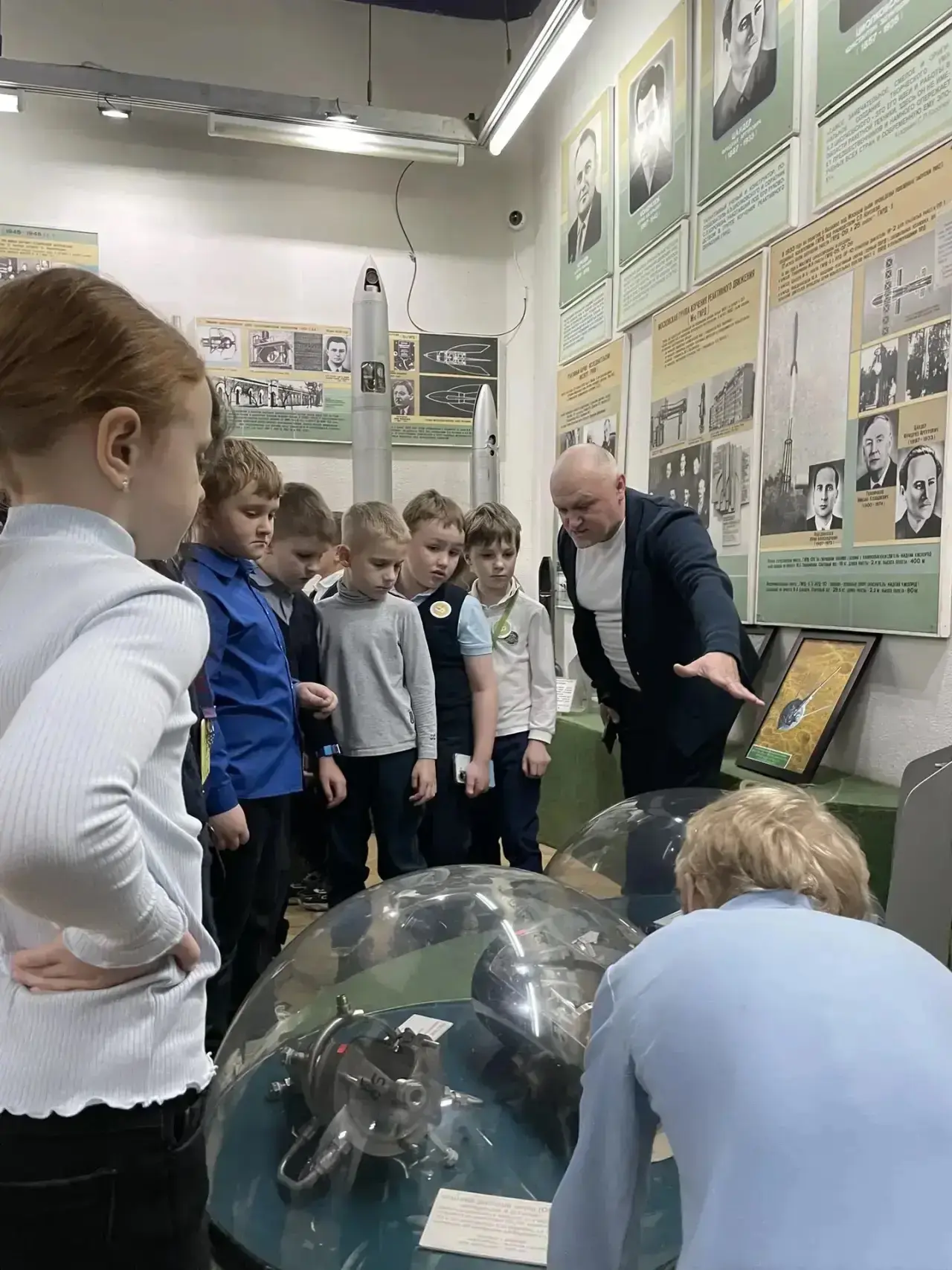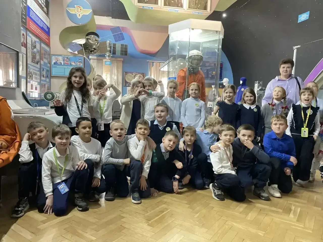 🧑🚀Здесь ребята узнали о космических науках, увидели макеты ракет- носителей, проследили эволюцию разработки скафандров.