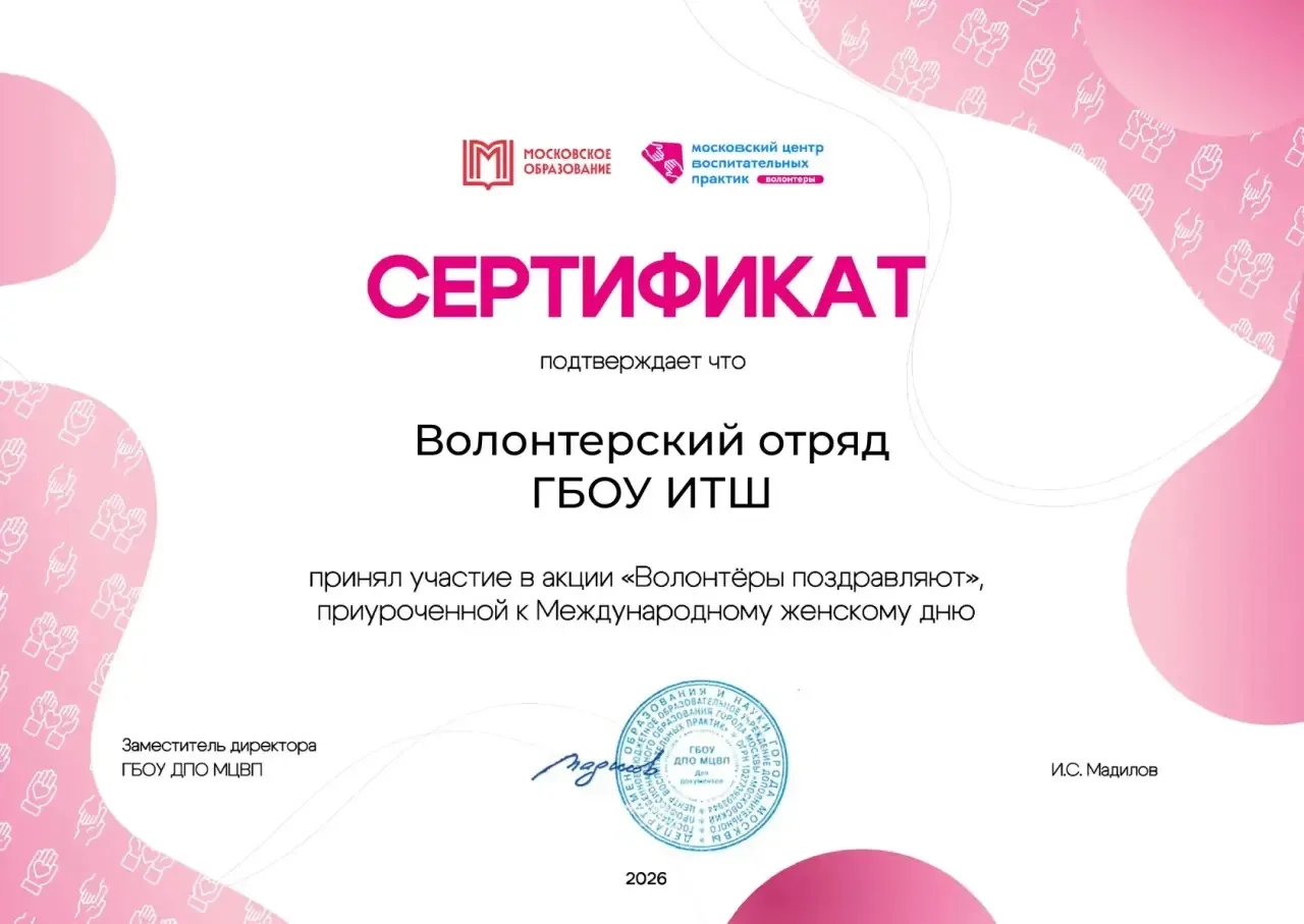📍Также наградили учеников 11 «Г» класса сертификатами, свидетельствующими о том, что в рамках реализации программы сотрудничества между Московским международным университетом и ИТШ, наши выпускники обладают правом поступления в ММУ на льготных условиях.