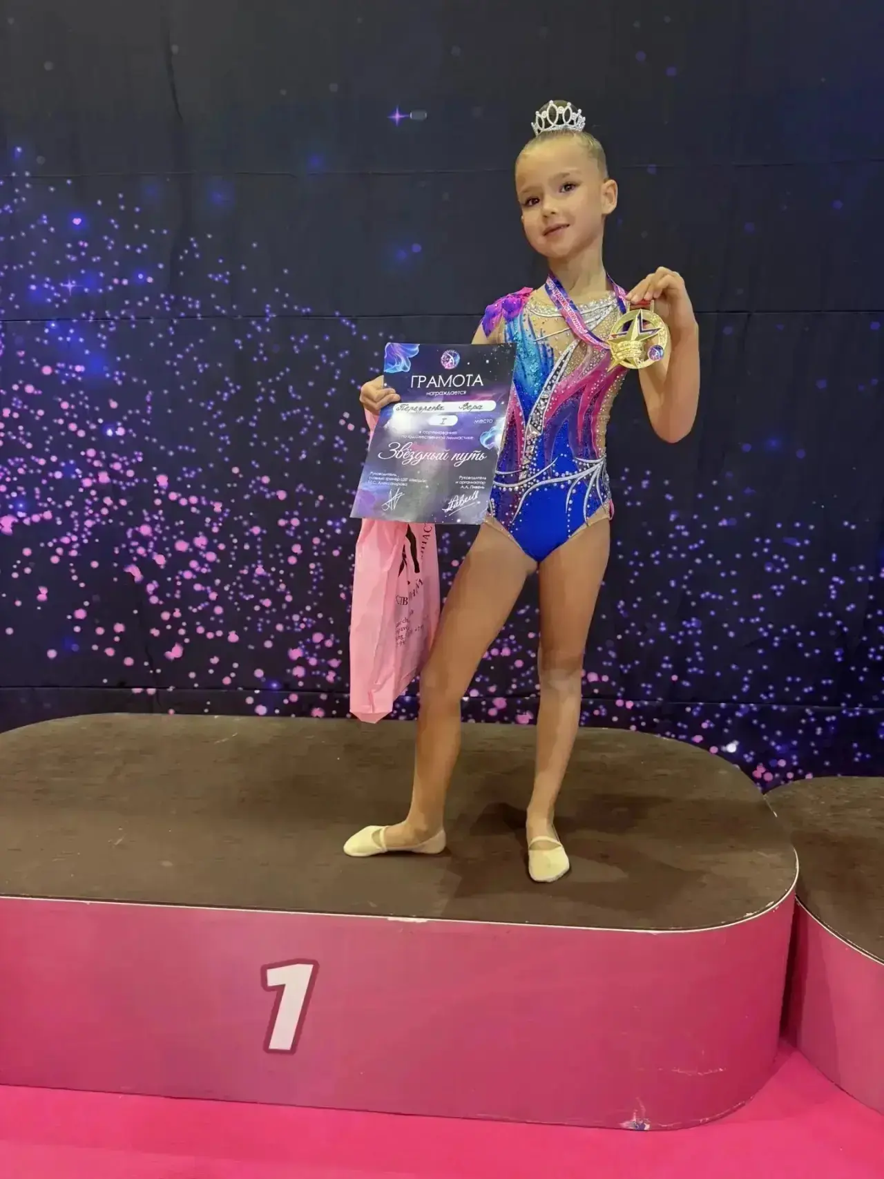 🥇Она заняла 1‑е место в соревнованиях по художественной гимнастике «Звёздный путь».