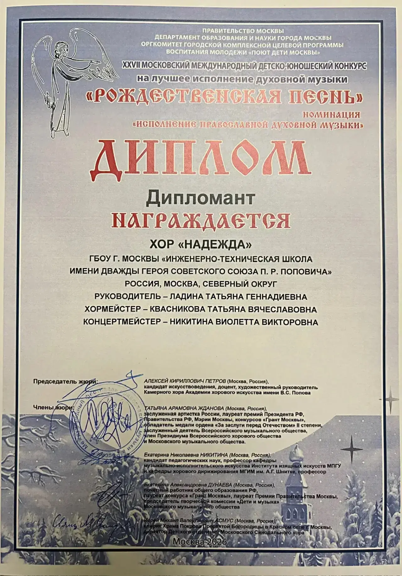 🎶29.01.2026 года, наш школьный хор «Надежда» принял участие в XXVII Московском Международном фестивале-конкурсе на лучшее исполнение духовной музыки «Рождественская песнь».