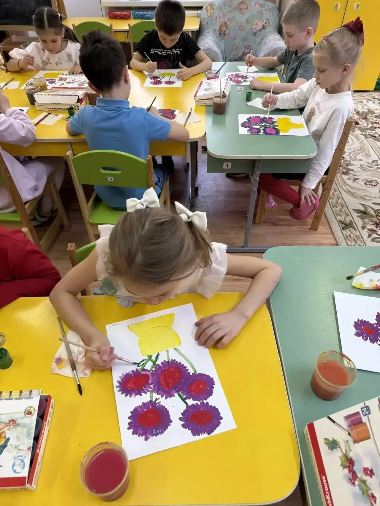 🎨 создали яркие рисунки «Цветы в вазе», проявив фантазию и потренировавшись сочетать цвета.