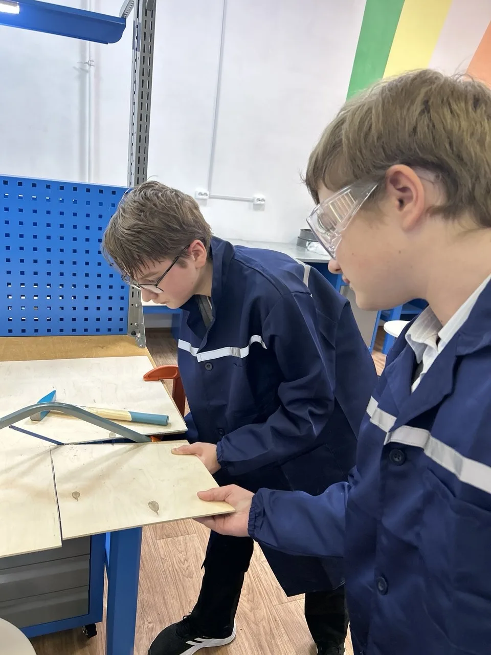 🙇♂️Ученики 7-9 классов осваивают работу с различными строительными материалами. Недавно познакомились с процессом обработки фанеры: от разметки эскиза до филигранного выпиливания. Это не просто «поделка на полку», это первые шаги к созданию собственных мини-проектов.