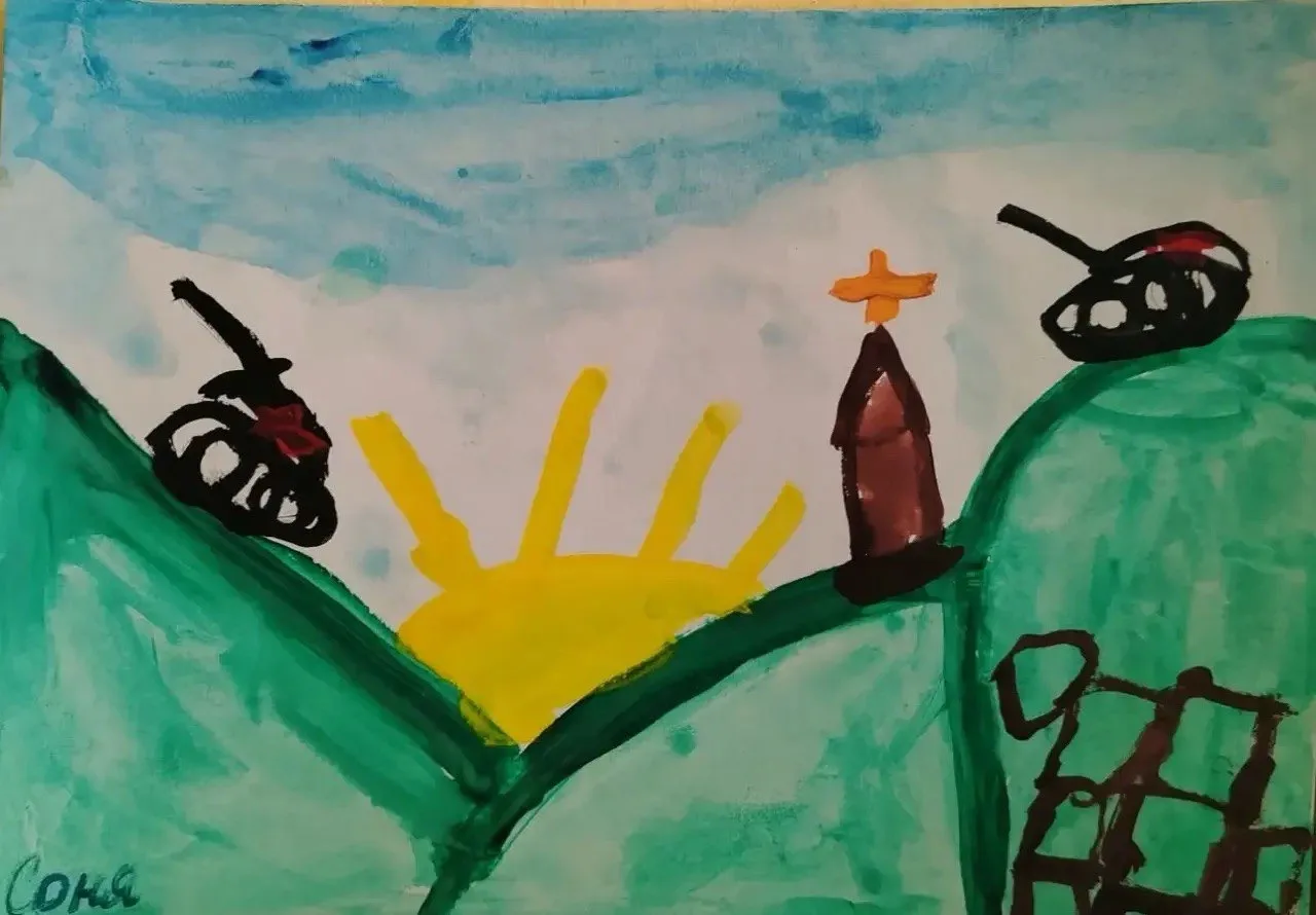 🛩️Ребята познакомились с таким жанром изобразительного искусства, как «баталии». Они старательно рисовали сюжеты военного времени: самолеты-штурмовики, танки, уничтожающие врага.