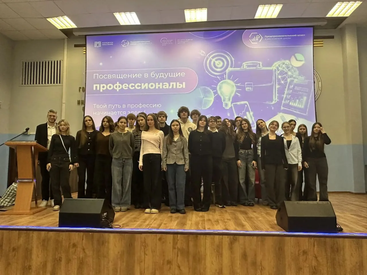 В РГАИС прошло знаковое событие: посвящение учеников предпринимательских классов в мир будущих профессионалов! Мероприятие было приурочено к празднованию Дня российской науки и собрало десятиклассников со всей столицы.
