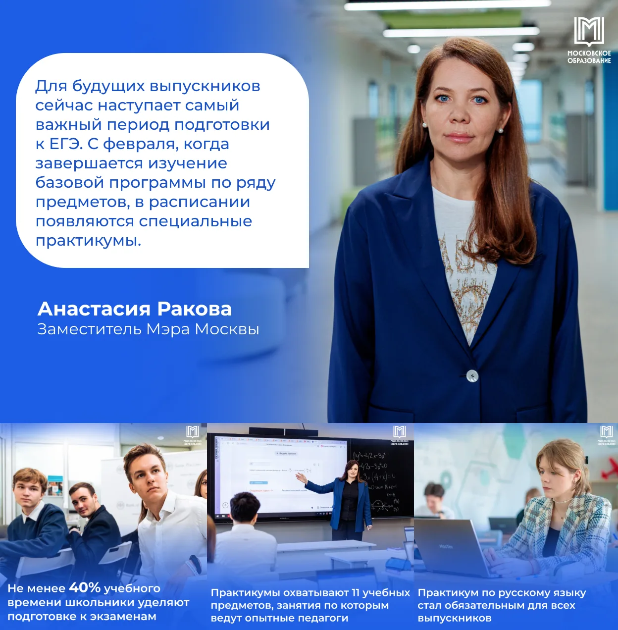 «Такой подход хорошо себя зарекомендовал: школьники приходят на экзамены более уверенными, а число высоких результатов растёт. Например, в прошлом году в шесть раз увеличилось число стобалльников по информатике, в два раза — по химии, в 1,2 раза — по биологии», ― рассказала заммэра Анастасия Ракова.