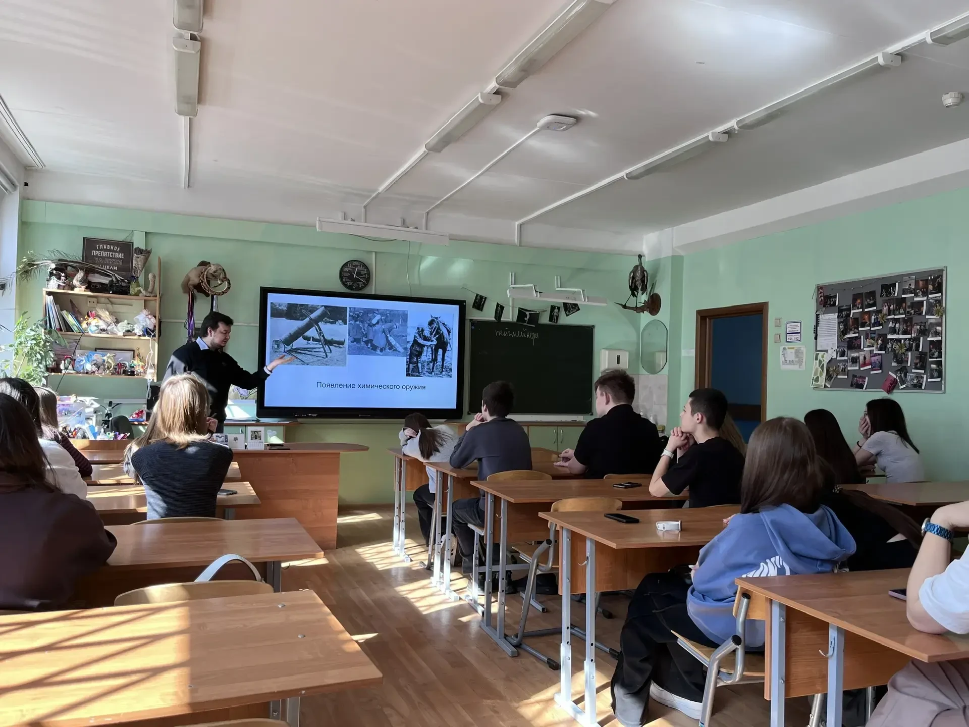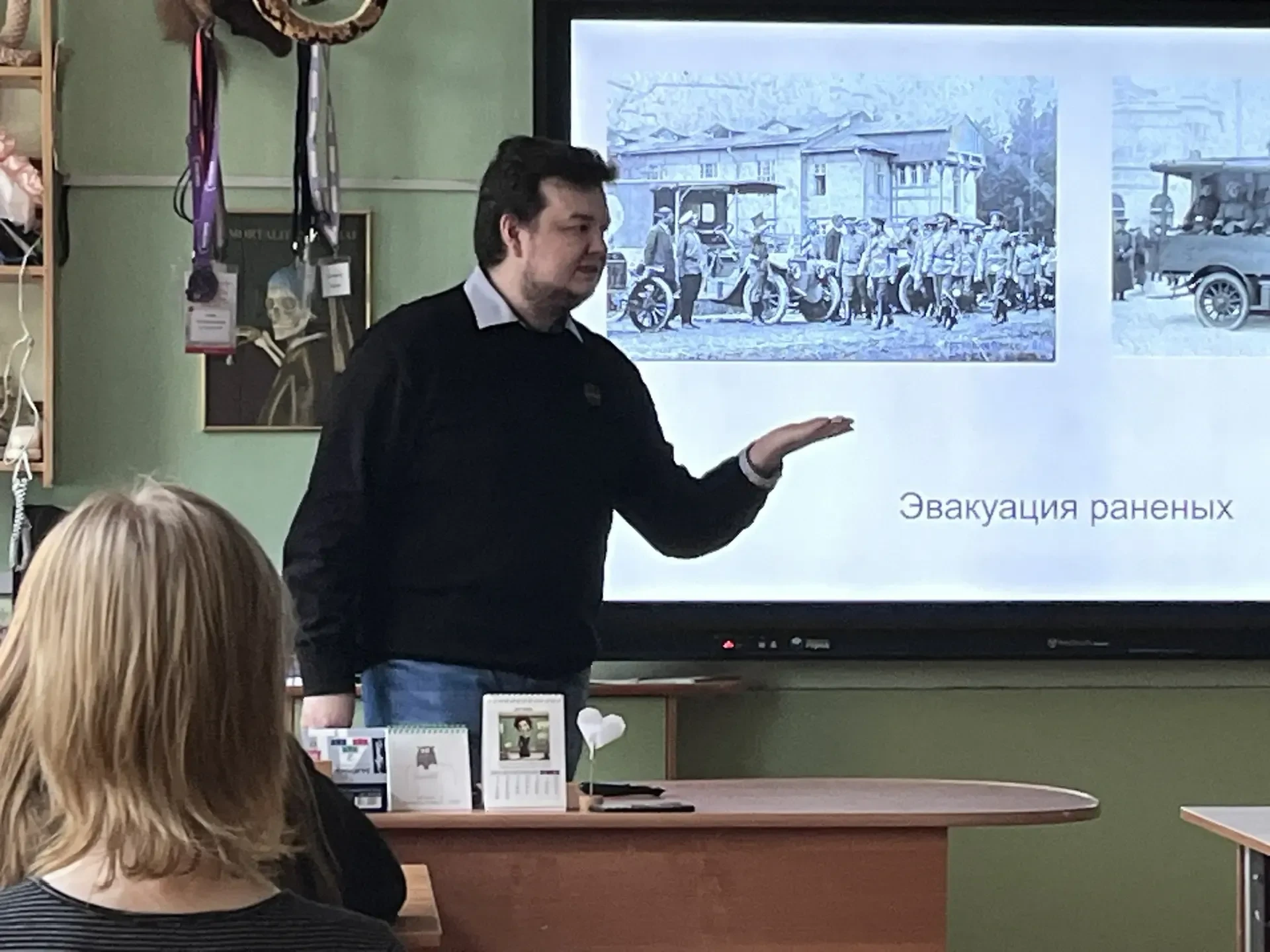Учитель истории Даниил Анатольевич Жуков провёл увлекательную лекцию для гостей из других школ, посвящённую медицине времён Первой мировой войны. На уроке было представлено множество интересных фактов о медицинских инструментах, медикаментах и болезнях того времени.