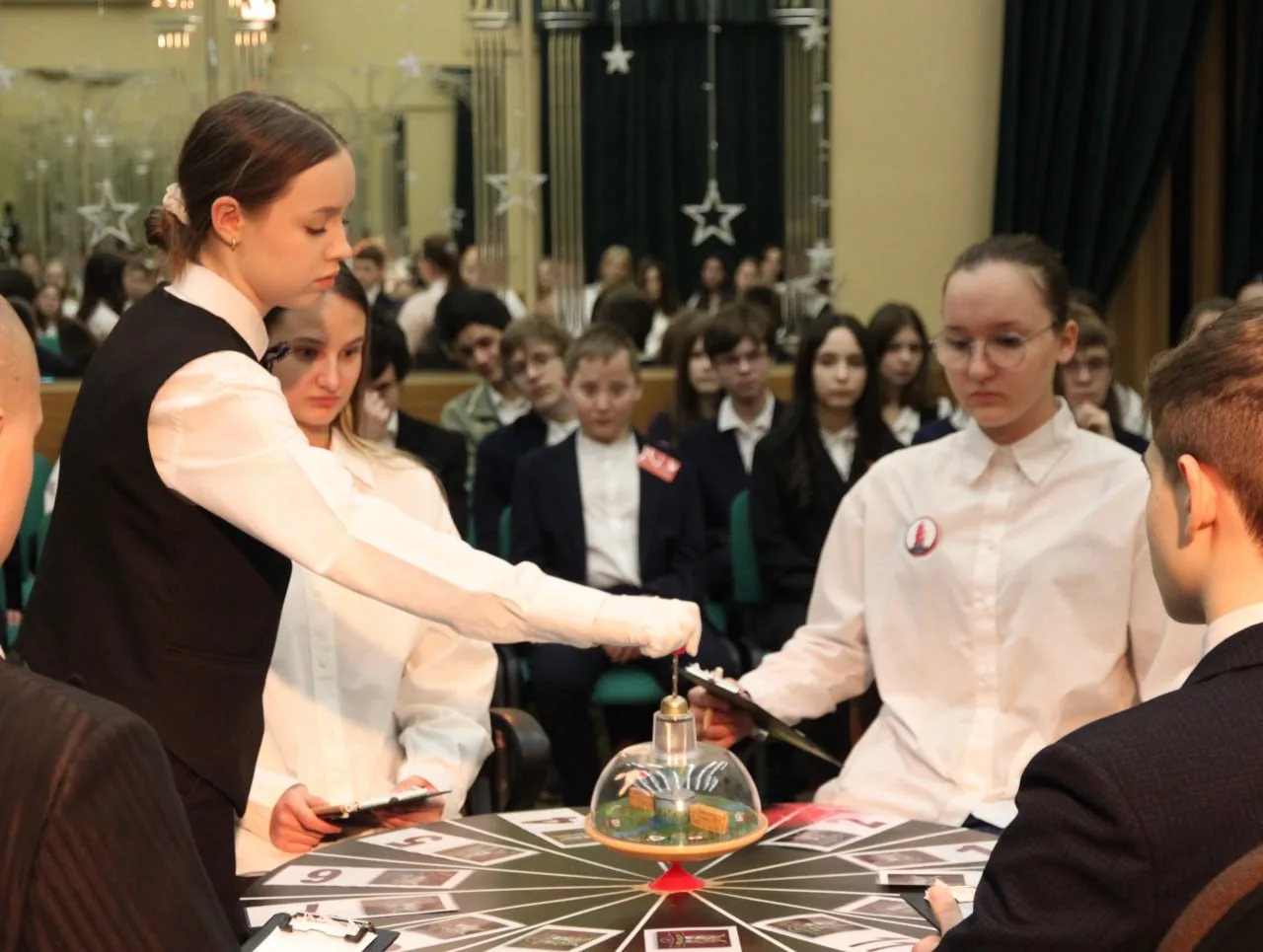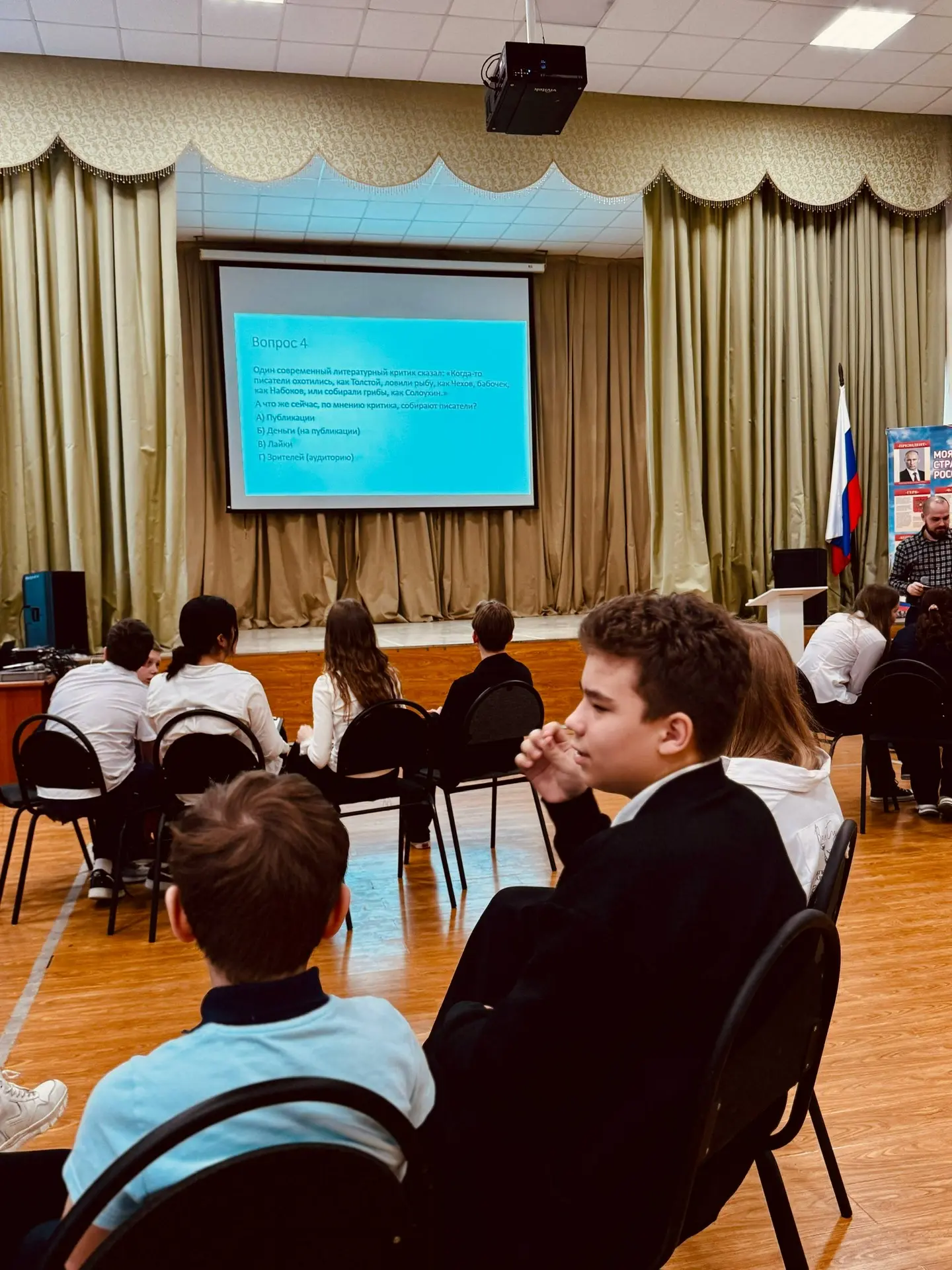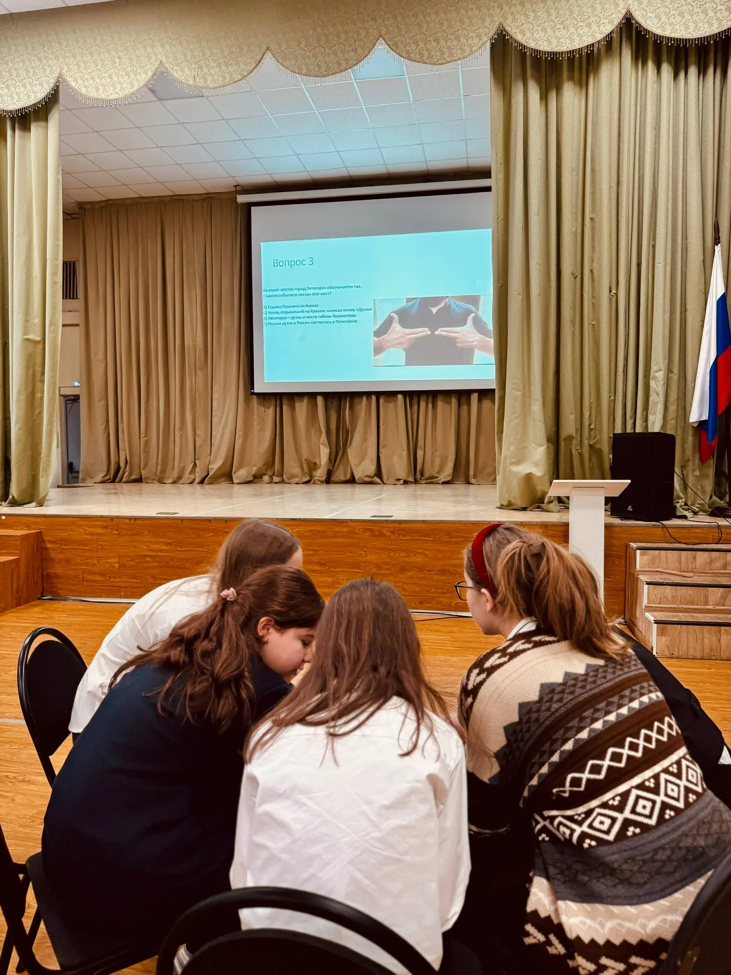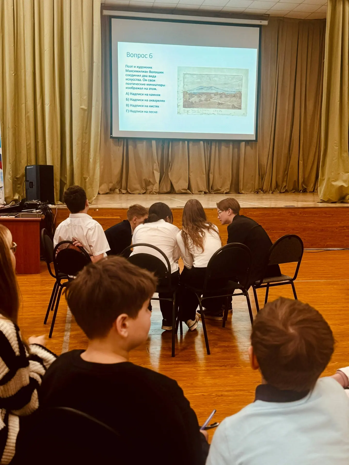 Вчера в нашей школе прошел захватывающий финал игр «Что? Где? Когда?», в котором команды трех корпусов поборолись против учителей за титул чемпионов. Педагоги подготовили самые сложные и занимательные вопросы, а наши восьмиклассники продемонстрировали отличную эрудицию и гибкость мышления!