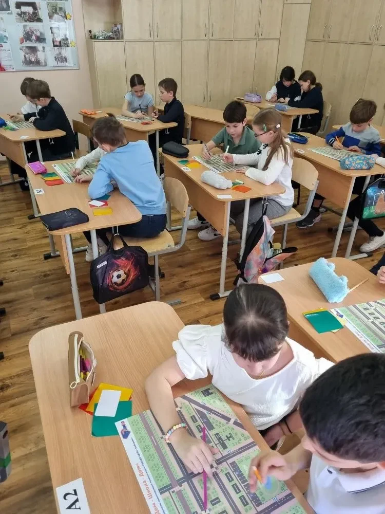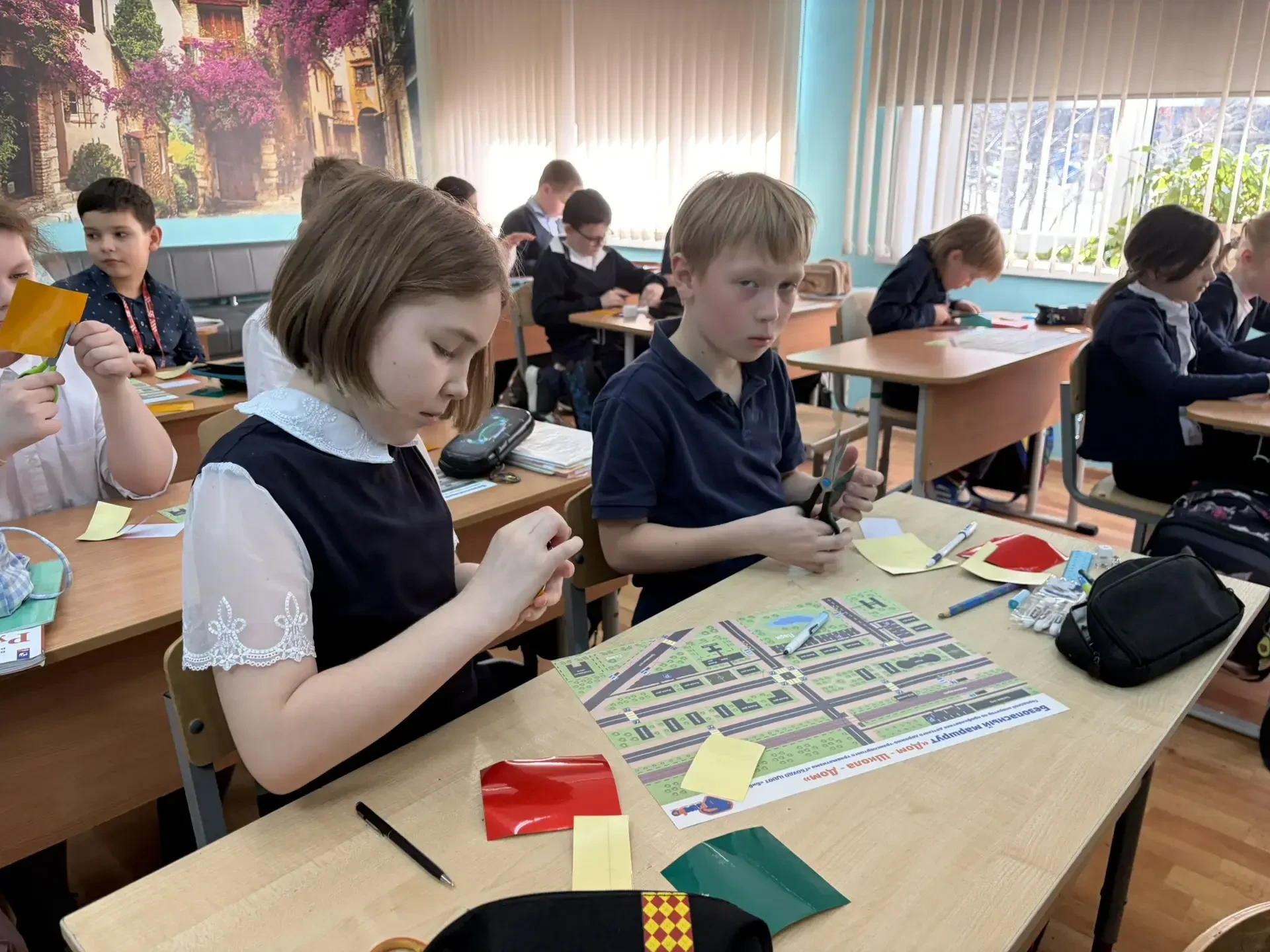 🗺️ А для ребят из 3-х классов инспектор ГИБДД провел беседу о безопасности дорожного движения. Дети с удовольствием повторили дорожные знаки, разобрали сложные ситуации на дороге и даже построили безопасный маршрут по карте. На плане местности юные пешеходы сами нашли все опасные места, чтобы всегда знать, где нужно быть особенно внимательными.