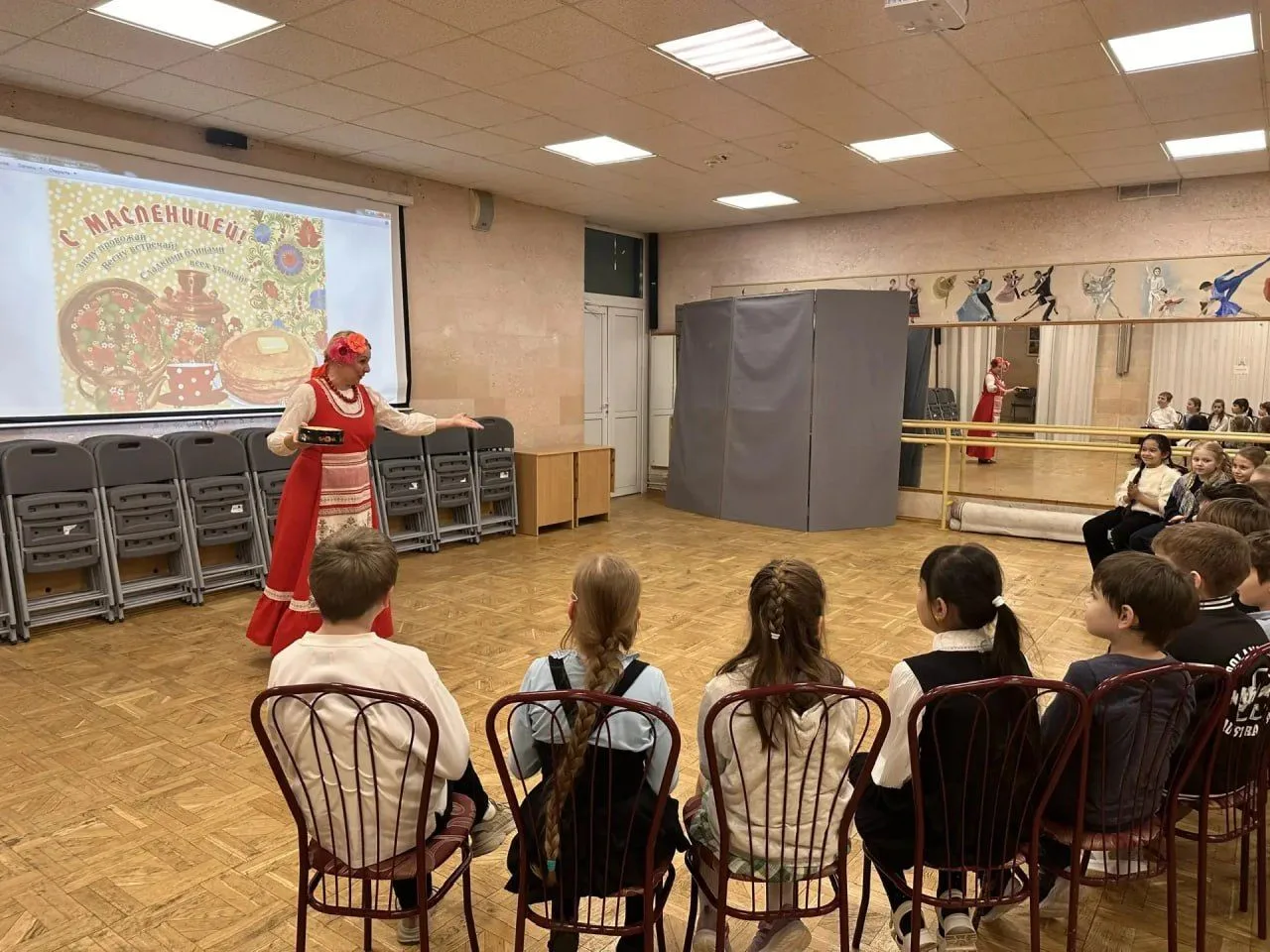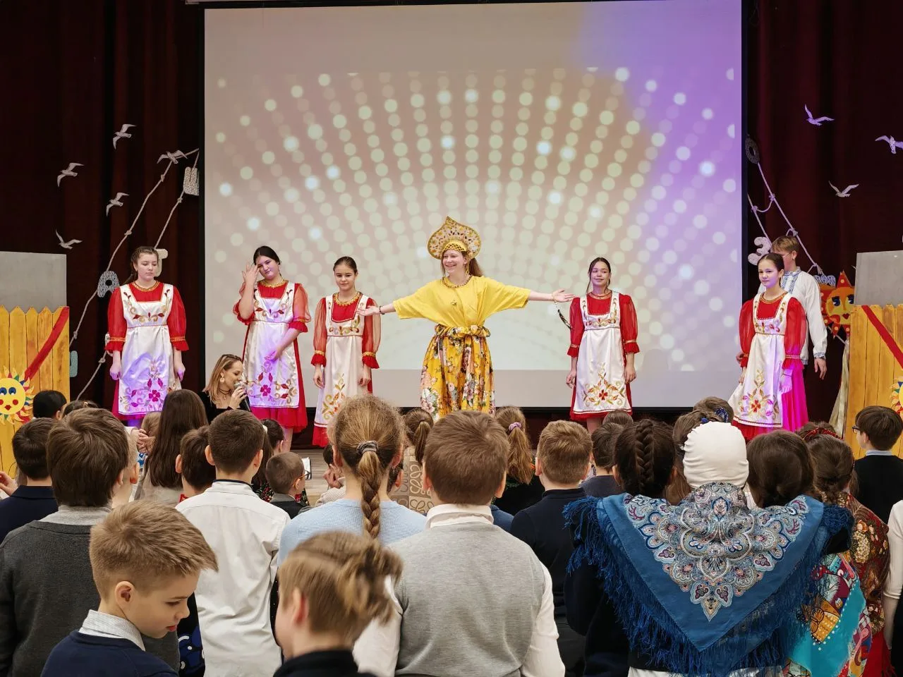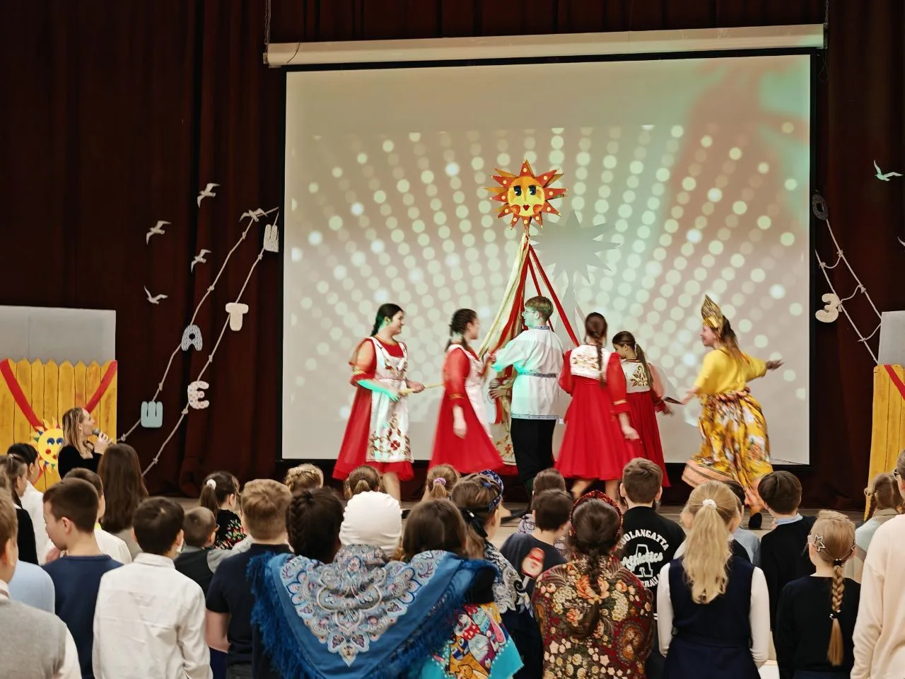 🥞 Звучали задорные частушки, веселые прибаутки и заклички, ребята водили хороводы и пели песни, а педагоги подготовили интересные рассказы и викторины об истории праздника. Запомнилась также и игровая программа от театра-студии «расСКАЗКИ». Смех и веселье царили в актовом зале!