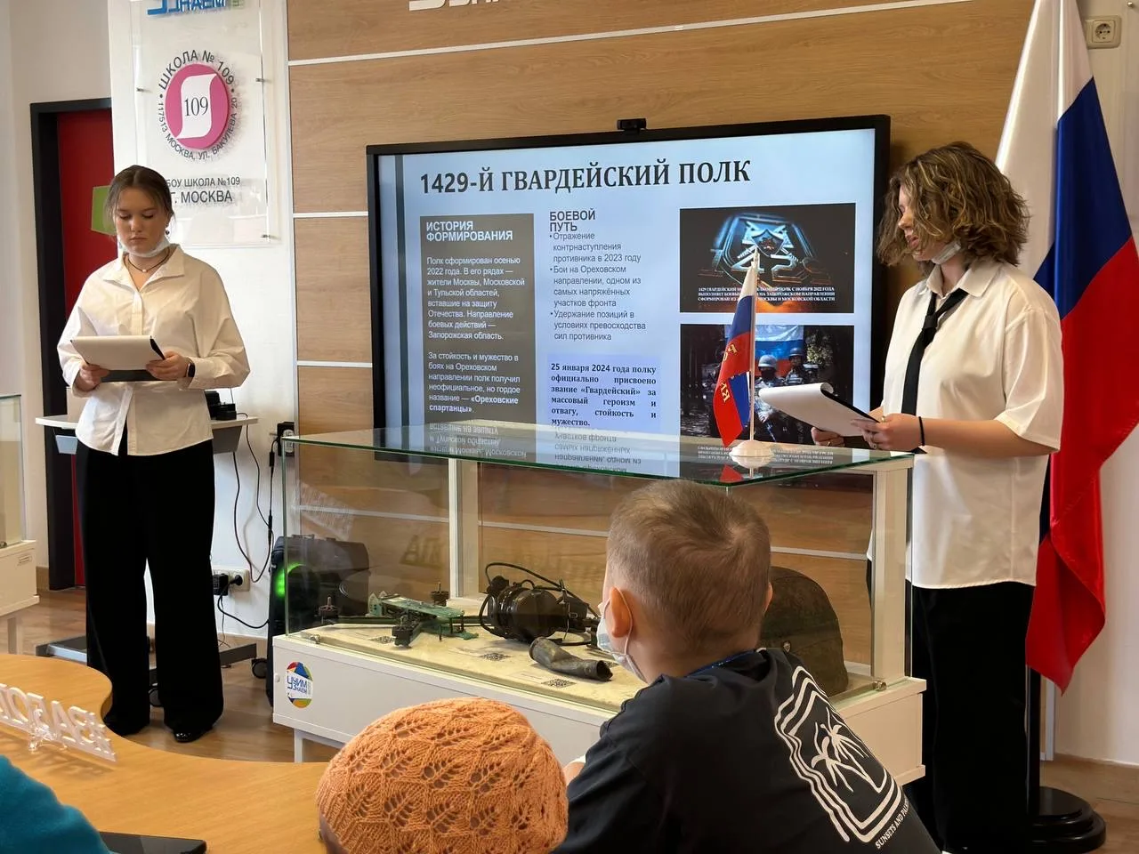 Ученицы нашей школы Василиса, Анастасия, Елизавета и Мария рассказали о подвиге бойцов 1429 гвардейского мотострелкового полка, а также о героизме защитников Отечества в разные исторические периоды.