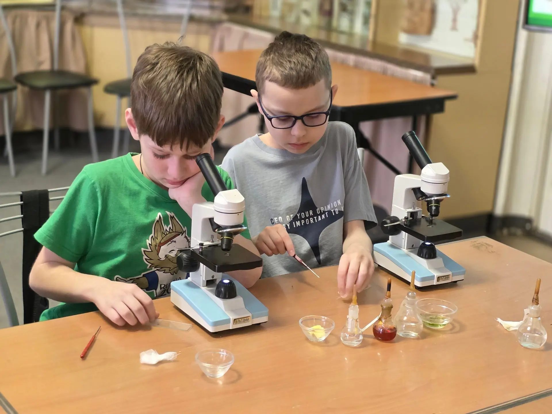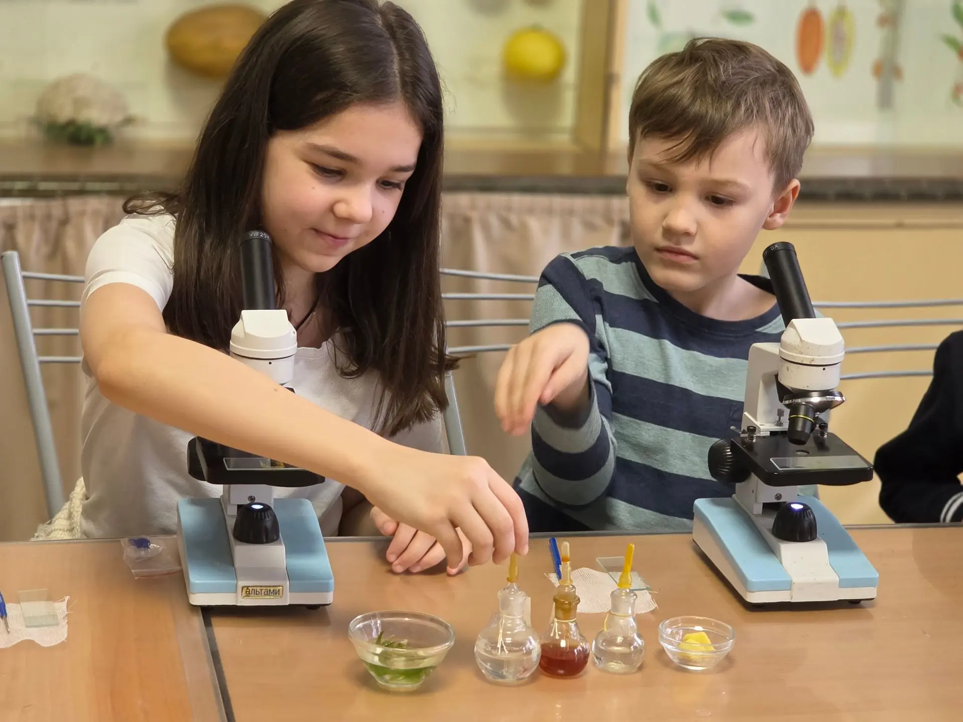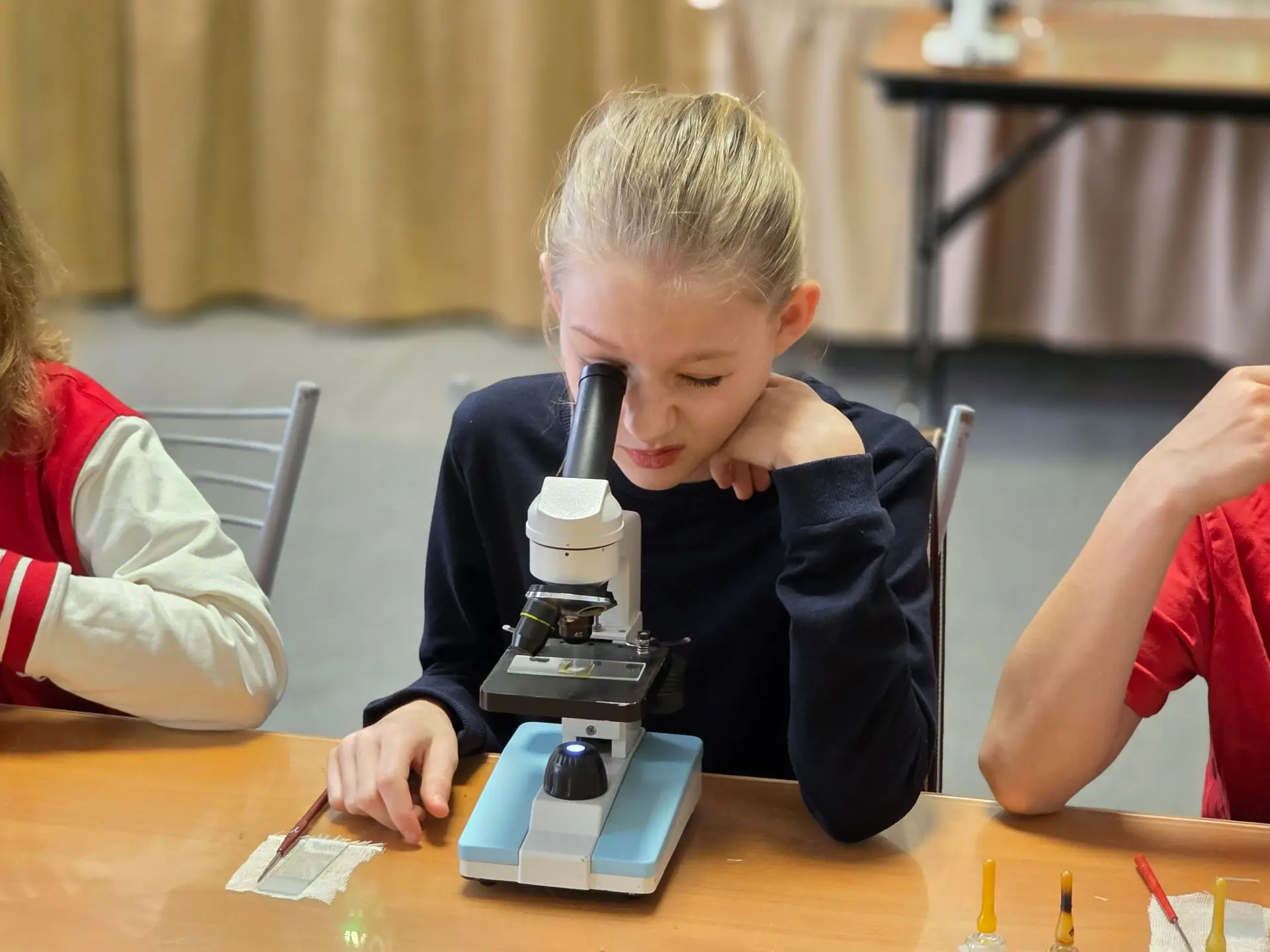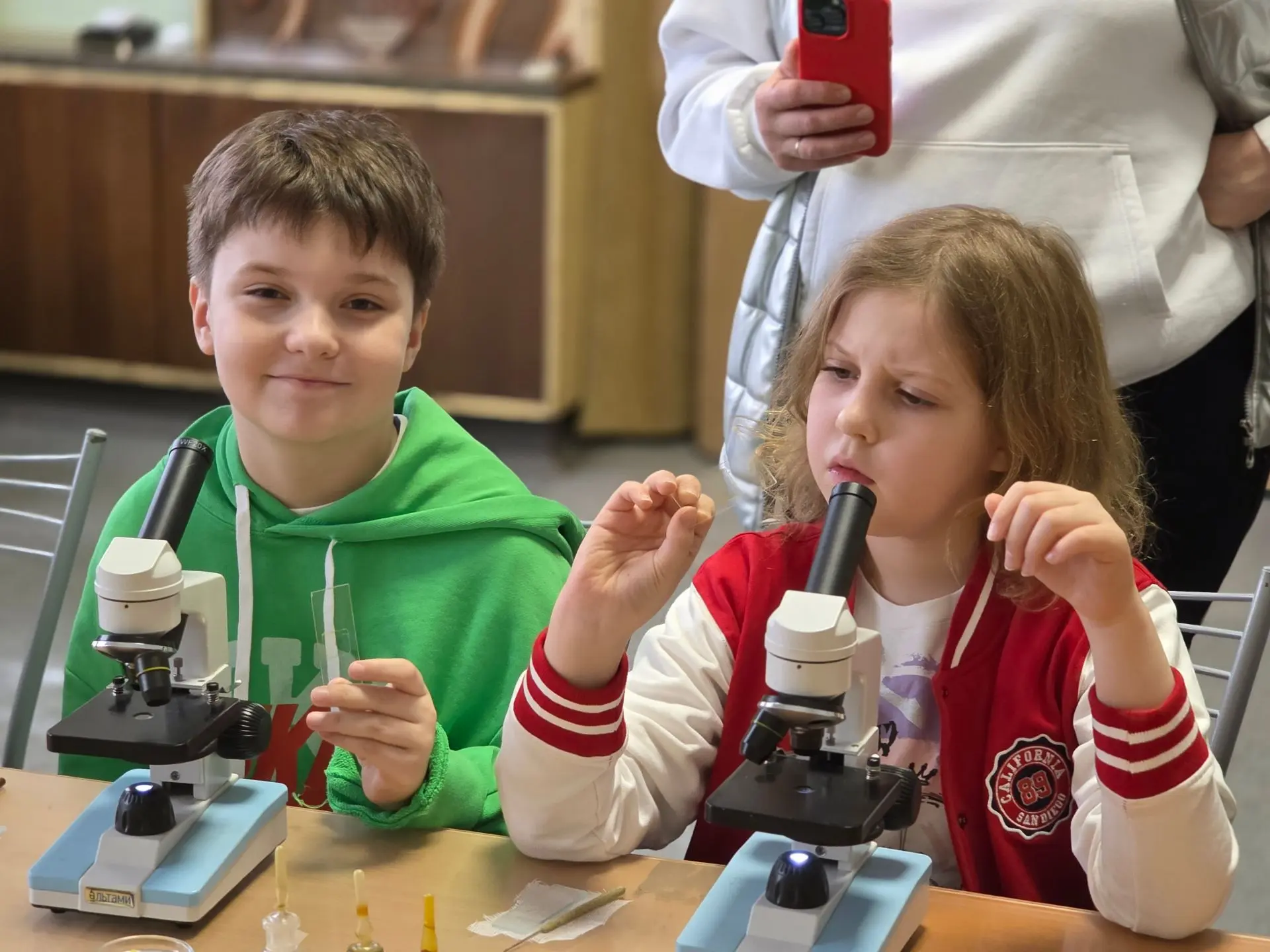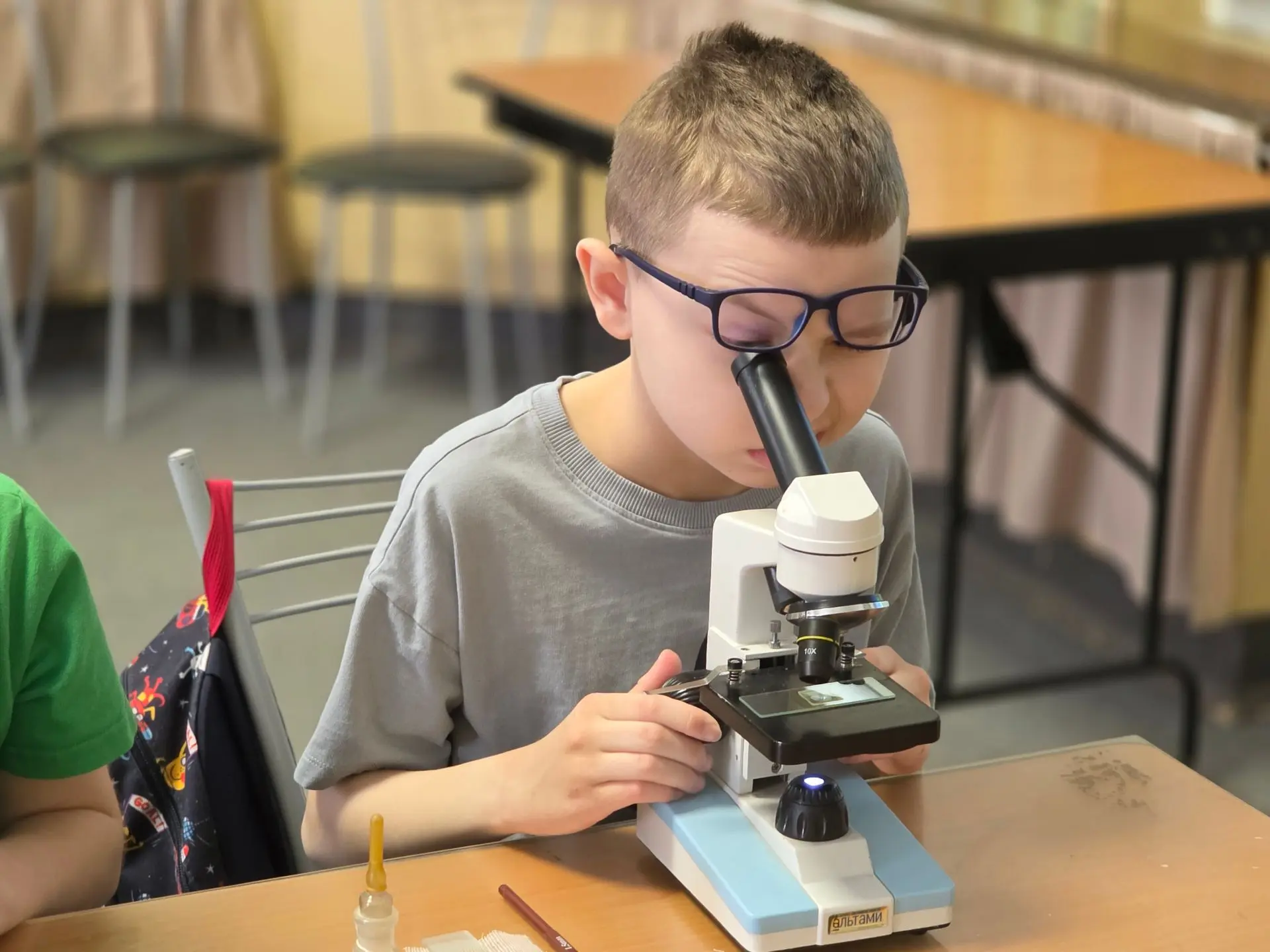 Занятие с микроскопом «Микромир в капле воды» — здесь ребята превратились в настоящих учёных! Каждый смог самостоятельно поработать с микроскопом, рассмотреть микроорганизмы в капле воды и увидеть, насколько разнообразен и удивителен микромир вокруг нас.