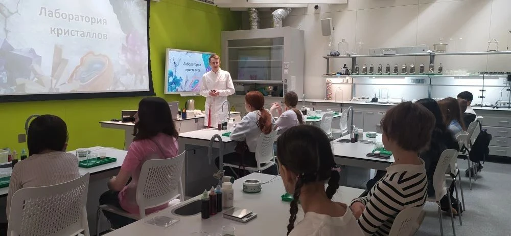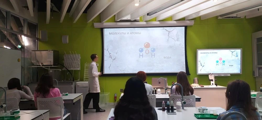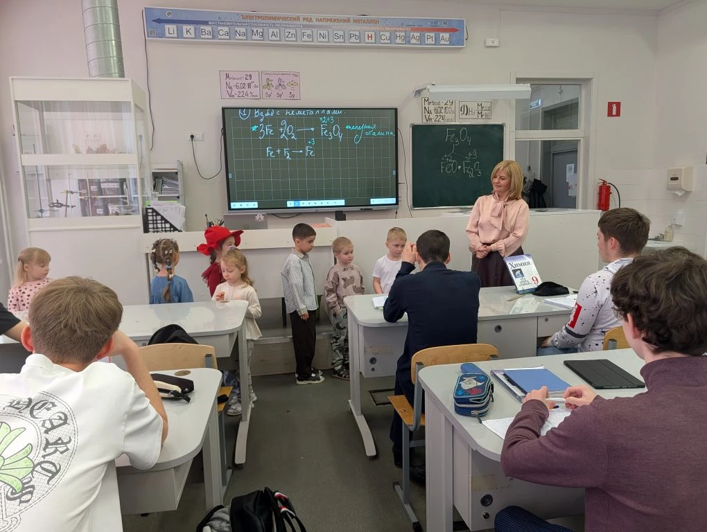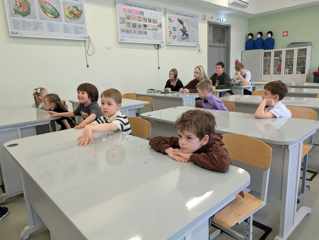 Первая группа заглянула на урок информатики, а затем переместилась в светлый кабинет биологии. Дети настолько прониклись атмосферой, что с радостью заняли места за партами — покидать их они явно не спешили.