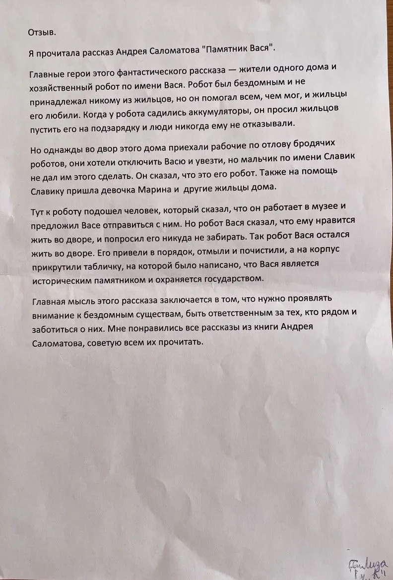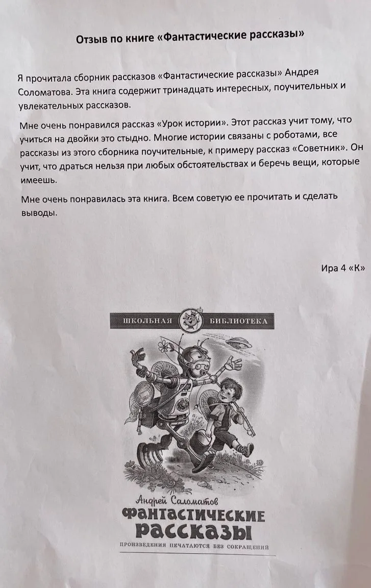Сегодня хотим поделиться большой гордостью: прекрасным отзывом на книгу, который написала ученица нашей школы Киры из 9«А» класса в рамках акции «Читающий ученик — читающая школа»: