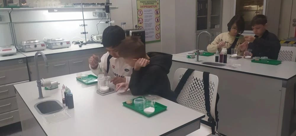 Но и это ещё не всё. Юным гостям открыли двери в место, которое обычно скрыто от глаз — химическую лаборантскую. Увидеть «святая святых» с колбами и оборудованием для опытов стало настоящим событием.