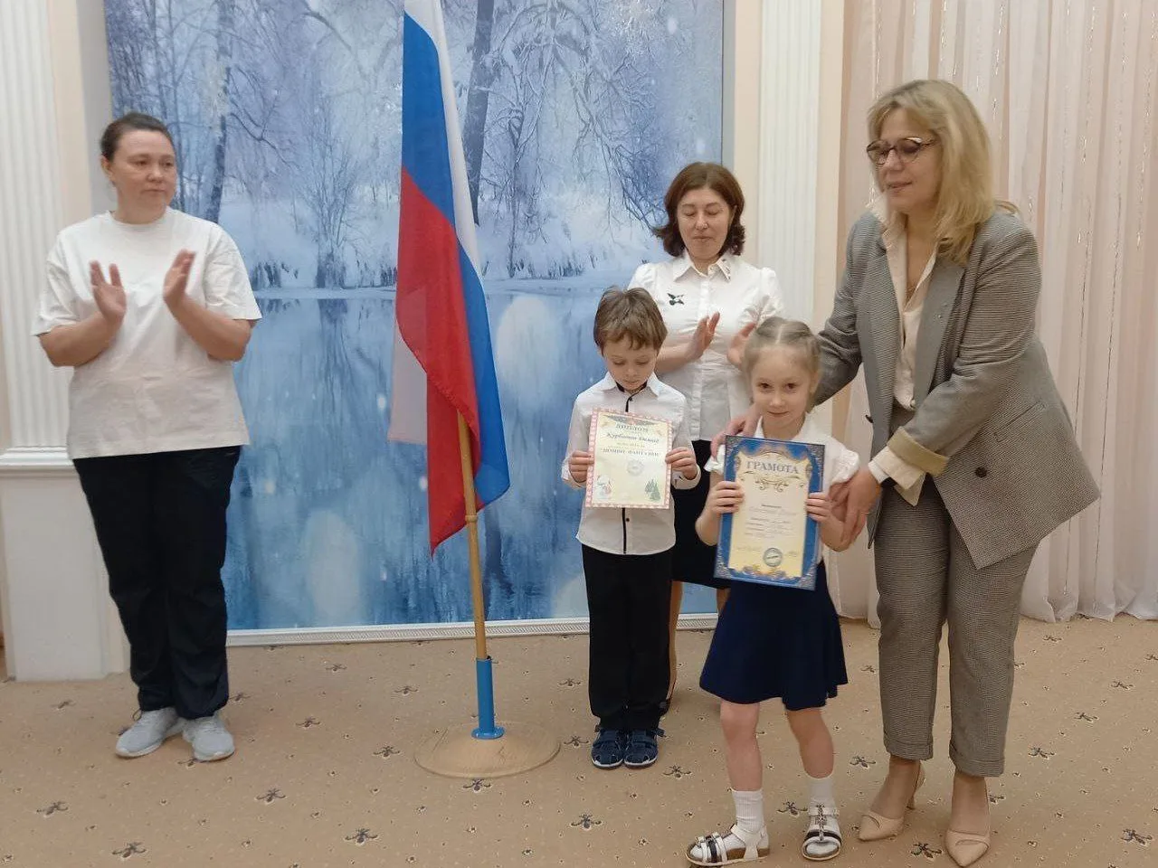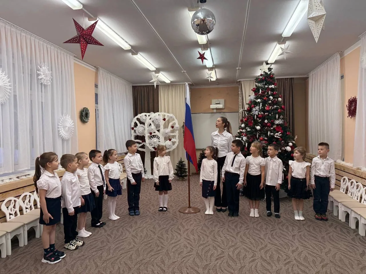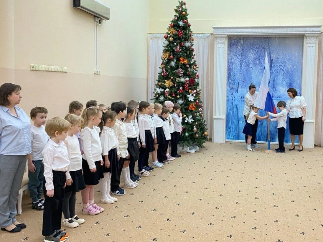 🇷🇺В дошкольном отделении 7️⃣ в церемонии приняли участие Демид, триумфатор конкурса рисунков и поделок "Зимние фантазии", и Полина, блистательная чемпионка итоговых соревнований по плаванию спортивного клуба "X-fit".