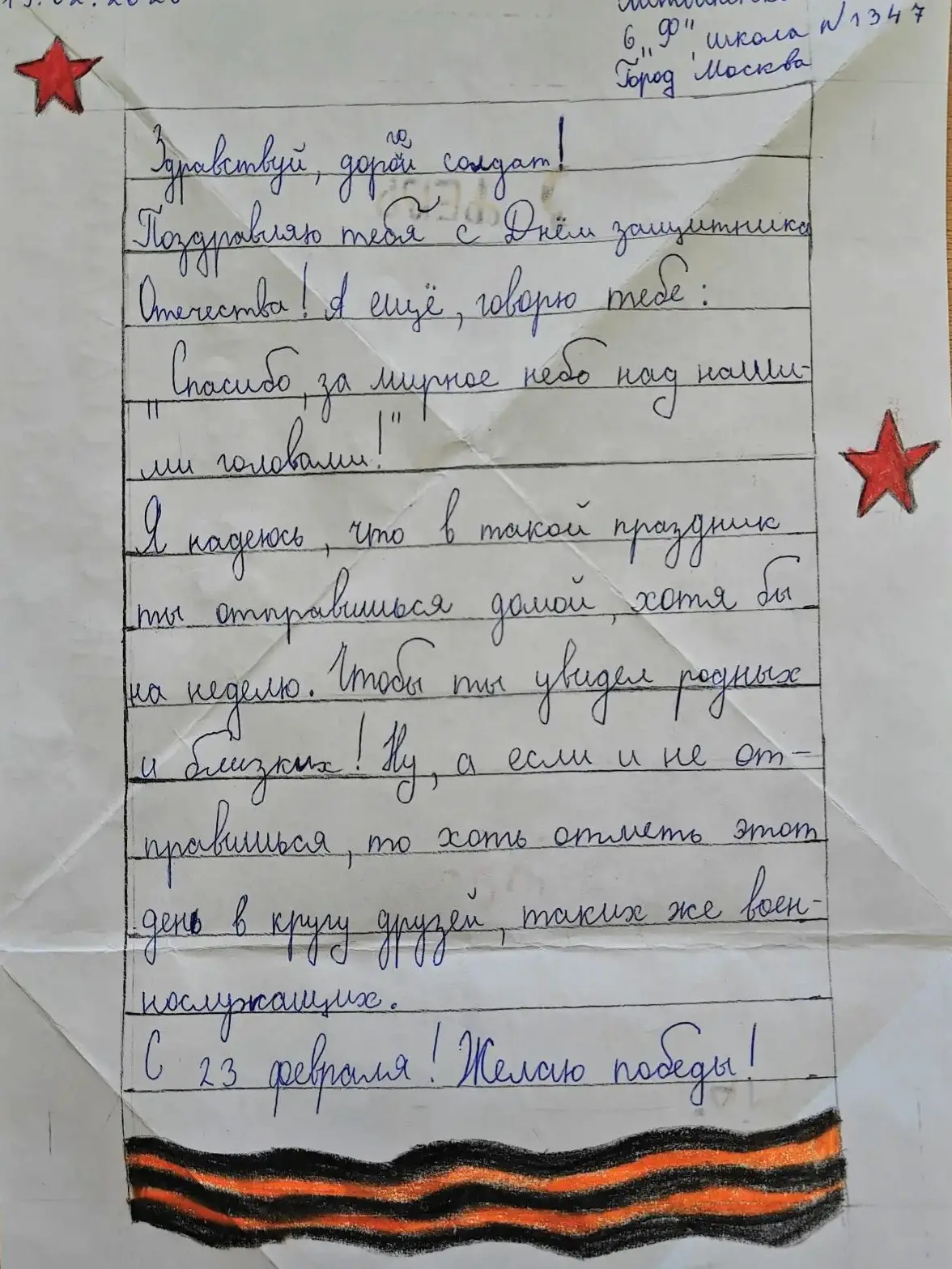 ⭐️В преддверии Дня защитника Отечества волонтёрский отряд «Доброе дело» принял участие в акции «Спасибо, защитник Отечества», организованной Московским центром воспитательных практик.