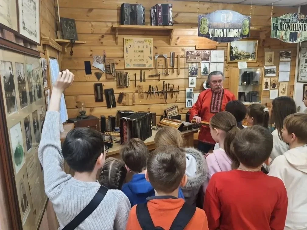 👍Ребята увидели здесь баяны и аккордеоны, гармошку-черепашку и гармошку-сапожок, а также множество других диковинных гармоней — разных размеров, расцветок, с уникальным звучанием и назначением. Им рассказали, как устроена русская гармоника, как рождается в ней звук, дали послушать, как поют разные модели. Под эти задорные переборы ноги сами просятся в пляс!