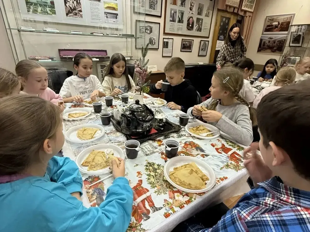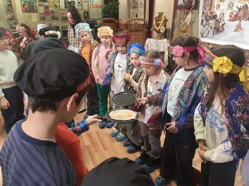🥞Сотрудники музея подготовили для школьников настоящее музыкальное представление-гуляние в духе Масленицы. Нужно было нарядиться в яркие платки, водить хороводы, веселиться от души, петь озорные частушки, "печь" блины и наряжать саму Масленицу. Завершилось мероприятие душевным традиционным чаепитием с ароматными блинами. Было невероятно весело, познавательно и вкусно!