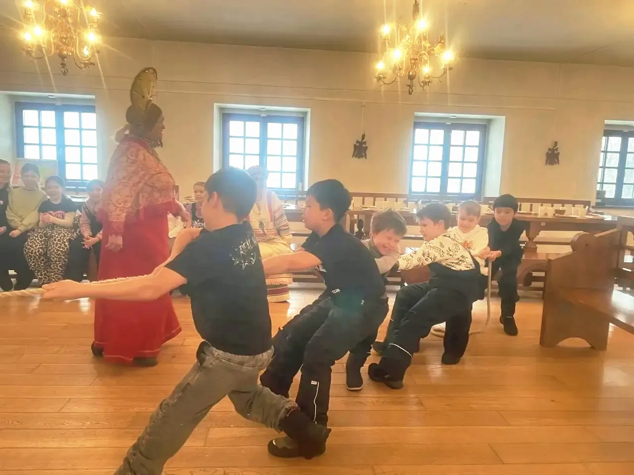 🔥Кульминацией, конечно, стала Широкая Масленица. Все дошкольные отделения преобразились. Звенела народная музыка, приглашая всех на веселье. Были и масленичные традиционные игры-забавы, и перетягивание каната, где побеждает дружба.