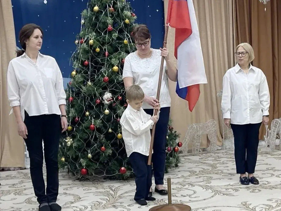 🇷🇺В дошкольном отделении 5️⃣ Кириллу выпала высокая честь внести флаг Российской Федерации за победу на Всероссийском открытом конкурсе поделок и новогоднего рукоделия "Сияние праздника в поделках".