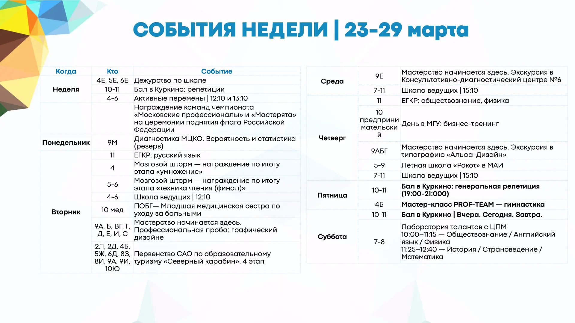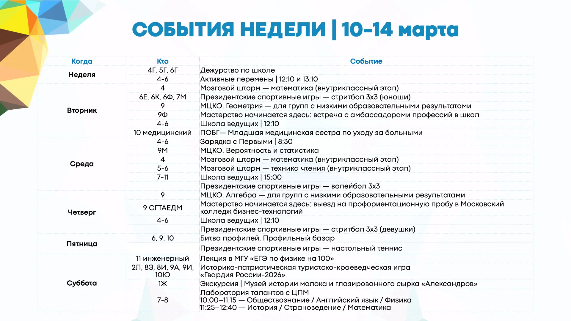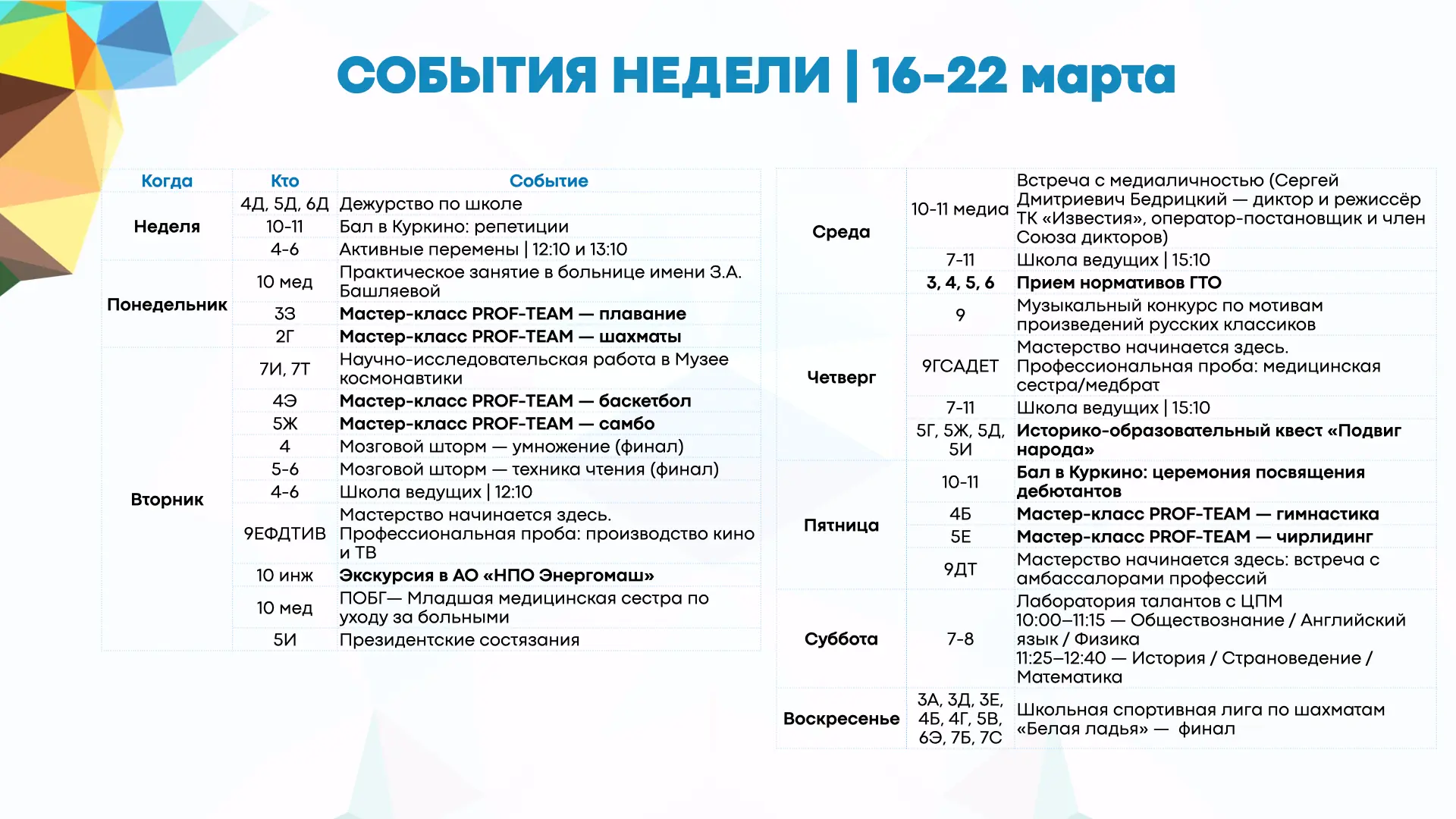 Анонс событий учебной недели с 16 по 21 марта — в карточке