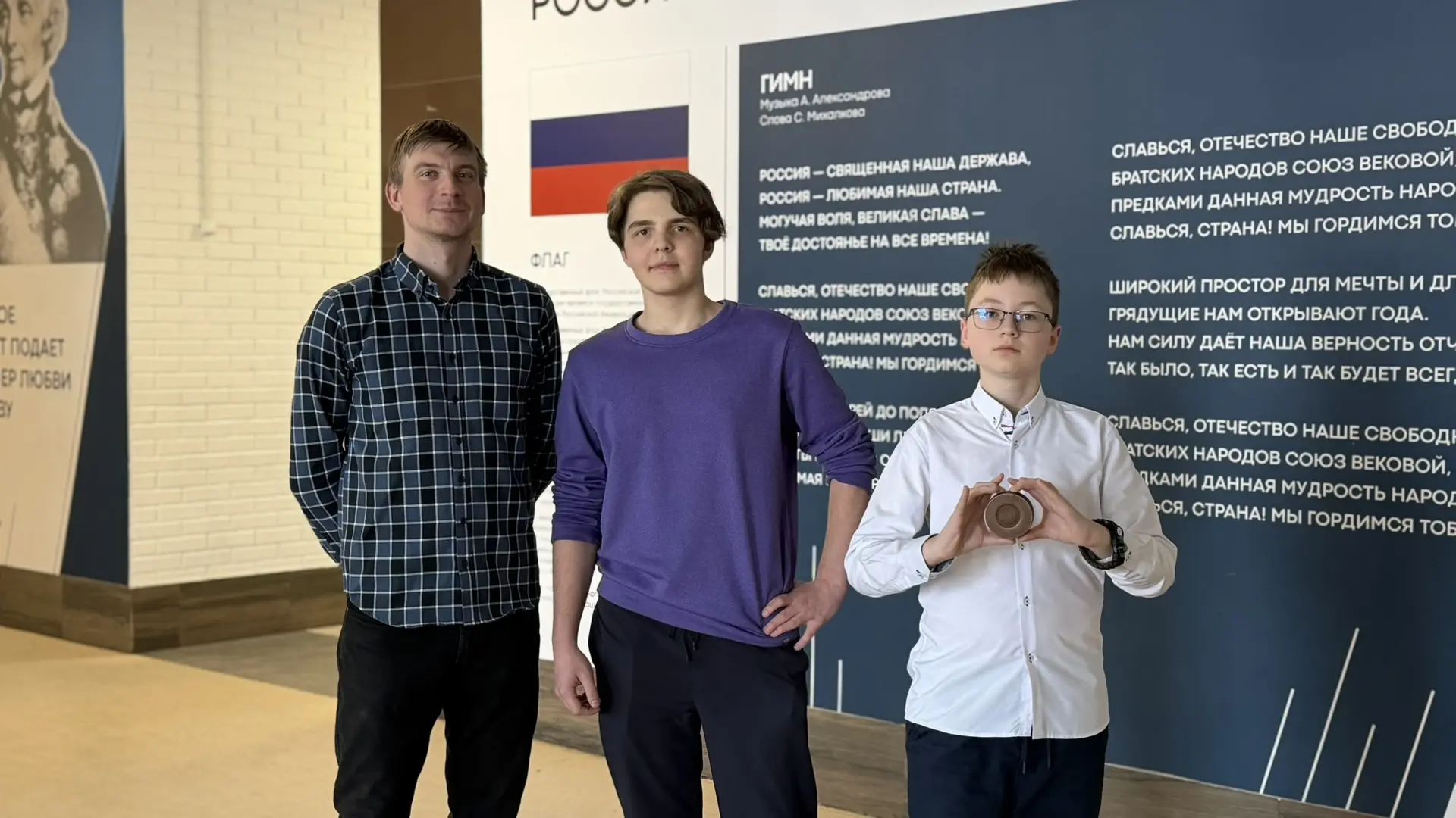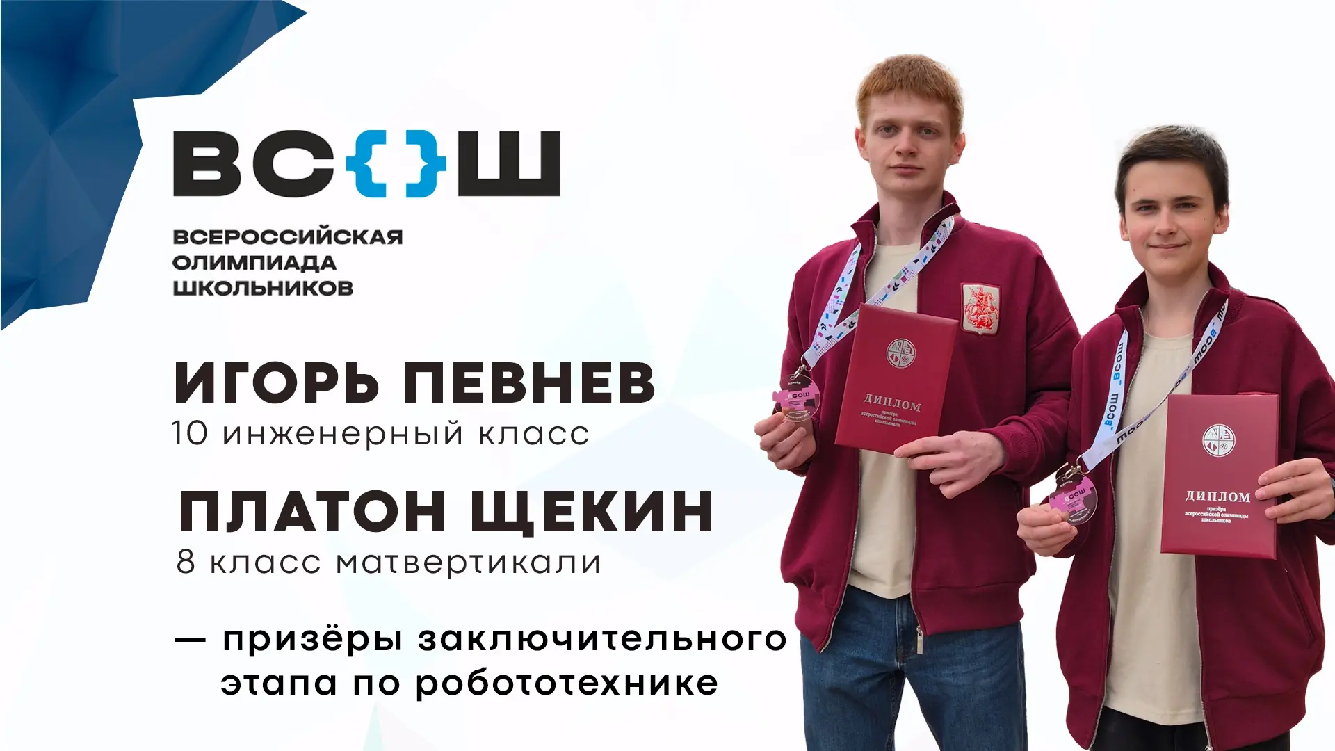 Поздравляем Игоря Певнева и Платона Щекина, наставника ребят по робототехнике Евгения Алексеевича Галкина!