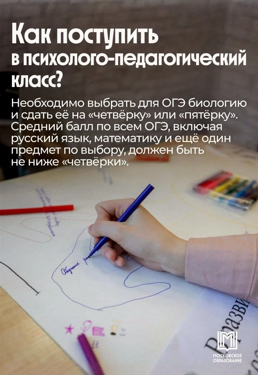 «Мы приняли решение расширить психолого-педагогическое направление в предпрофессиональных классах благодаря новому партнёрству с психологическими факультетами ведущих вузов страны. В их числе МГУ имени М.В. Ломоносова и Сеченовский университет. Это позволит школьникам в течение двух лет обучения в предпрофессиональном классе познакомиться с широким спектром профессий, включая клиническую и бизнес-психологию, а также логопедию и дефектологию. Для нынешних старшеклассников это перспективный образовательный и карьерный маршрут», — рассказала заммэра Анастасия Ракова.